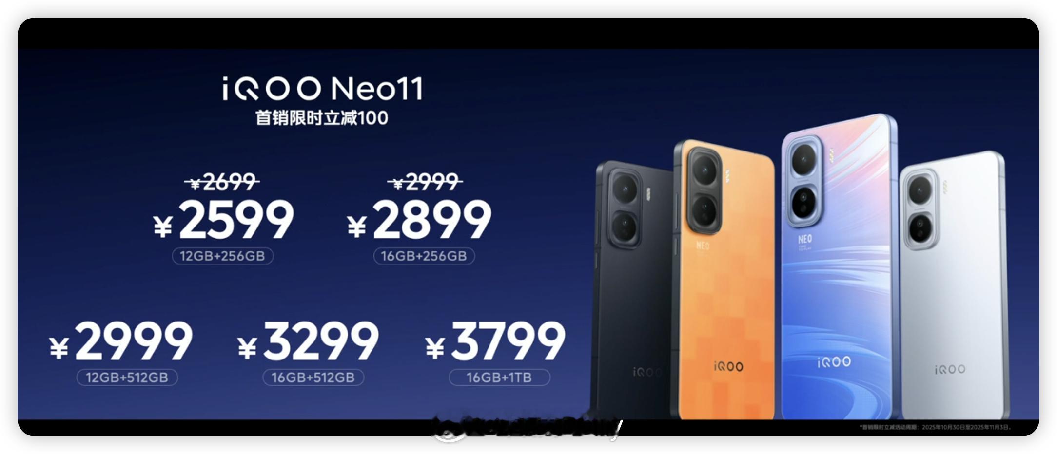 iQOO Neo11 2599起价格真不错!!行业唯一2K屏&7500mAh大电池,还有好调校和好体验。