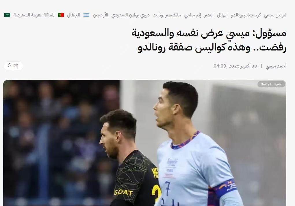 据沙特媒体报道,梅西曾主动示好,希望自己能够被租借到沙特球队踢球。但该提议最终被沙特体育部长拒绝,并强调沙特联赛并非仅仅是备战世界杯的跳板。