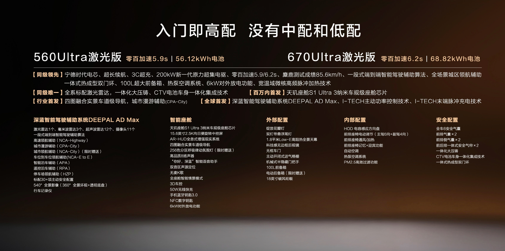 入门级满配咱想要的它都有,标配宁德670超长续航开得够远!标配激光雷达支持DEEPAL AD Max端到端智驾系统和3nm车规级芯片,辅助驾驶能力到位。