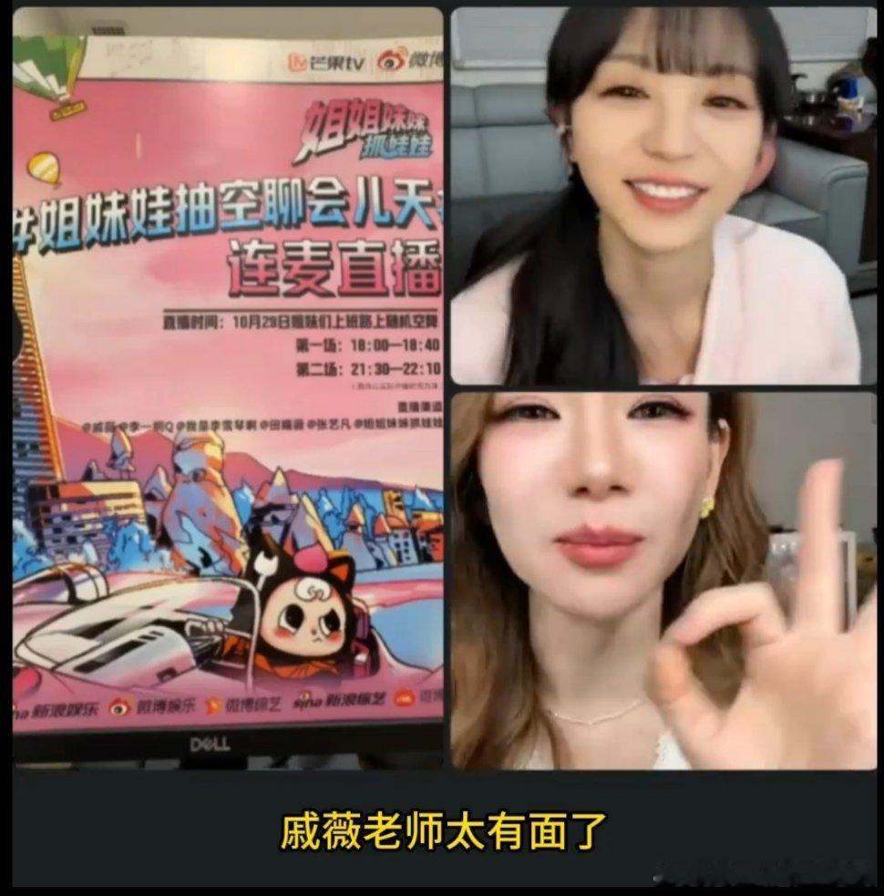 田曦薇[超话] 《姐姐妹妹抓娃娃》直播名场面!田曦薇直言戚薇是心中歌手TOP1,更是自己“永远的榜一”,年度歌单力证含金量,戚薇惊喜回应,川渝双薇互宠姐妹情甜度爆表!