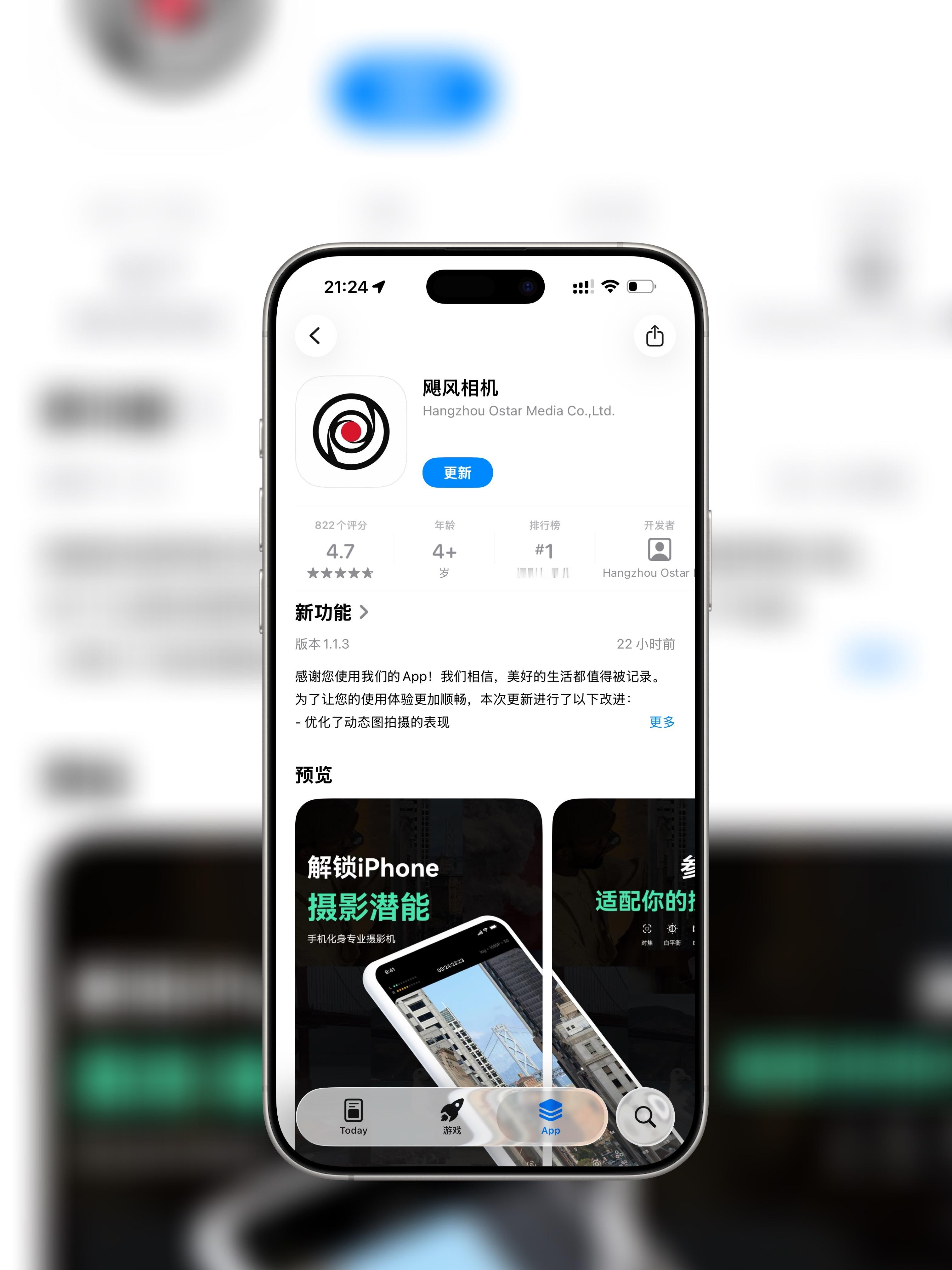 影视飓风出品的「飓风相机」刚上线就在App Store冲到第二名了。