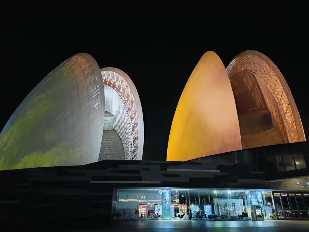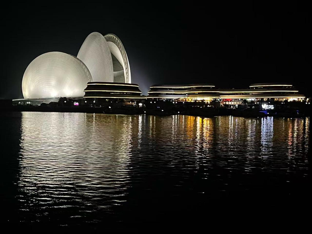 七律·再游日月贝 琼楼历历野狸殊, 日月连辉入画图。 碧海抟云结皓贝, 银轮濯浪蕴明珠。 晨曦半透双屏雪, 夜幕通莹四面弧。 待到华堂萦广乐, 歌声棹影一湾浮。