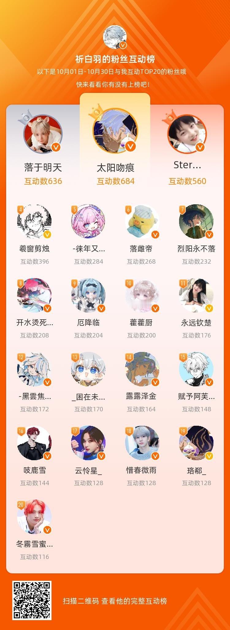等,你们是我本月排名TOP20的粉丝,感谢你们的陪伴与支持,期望一直都有你们的相