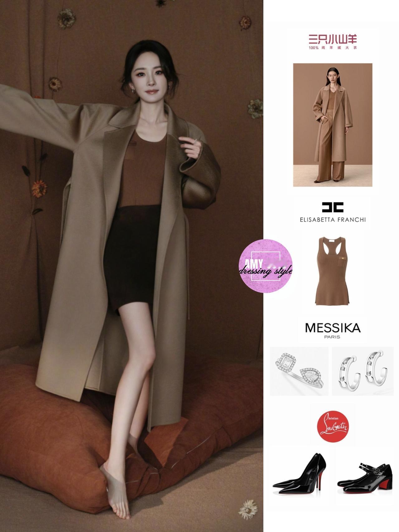 杨幂这身ELISABETTA FRANCHI驼色大衣造型太戳“冬日温柔感”了!长款大衣叠穿同色系针织背心+黑裙,慵懒又显比例;搭配MESSIKA钻石首饰和CL高跟鞋,把松弛氛围感与精致感焊死,是冬日里的温柔大姐姐没错~ 杨幂