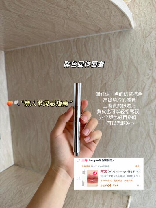太爱这种清透挂的妆了~看起来像皮肤自然透出的好气色,有心动的感觉啦~ 出门约会就画这个了!情人节要到啦,又入了一波护肤品和彩妆,给大家分享比较爱用的三个! BOBBI BROWN的橘子面霜大家都不陌生了 是护肤➕妆前二合一的,本干皮真的离不开它,丝滑的冰激淋质地很好推开,保湿效果杠杠的 后续上妆会很服帖,基本没有卡粉脱妆啦~里面富含乳木果还有各种维他命等,而且自带的橘子香气真的很喜欢哈哈 又回购了毛戈平鱼子酱面膜,每次皮肤状态特别差的时候会用它来急救,满满一罐都是深海鲟鱼籽精华和人参精萃,可以充分滋养皮肤!简单保湿后用刷子厚厚涂上一层,第二天脸蛋就变得嘭弹透亮的,没试过的宝宝可以放心入,不挑肤质~ 一直很喜欢Joocyee酵色口红,这次又出了新系列~不易沾杯,质地也蛮丝滑,重点是它真的好滋润,大热影视剧ID女主凌妙妙同款!我入的是565冰栗碎,底饱和的红茶奶咖色,感觉很适合约会淡妆,清纯又高级~ 马上到情人节啦,姐妹们也可以送给自己一份礼物,在🍑🔍【情人节灵感指南】就能选到自己想要的啦,需要的宝宝可以试一下~