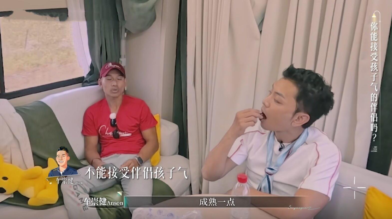 施嬅:Anson完全是,他像个孩子,有时候也会发脾气。他就是像个孩子,才会有单纯真诚的的一面。我感觉我好像一个妈妈,我也不想做伴侣的妈妈。