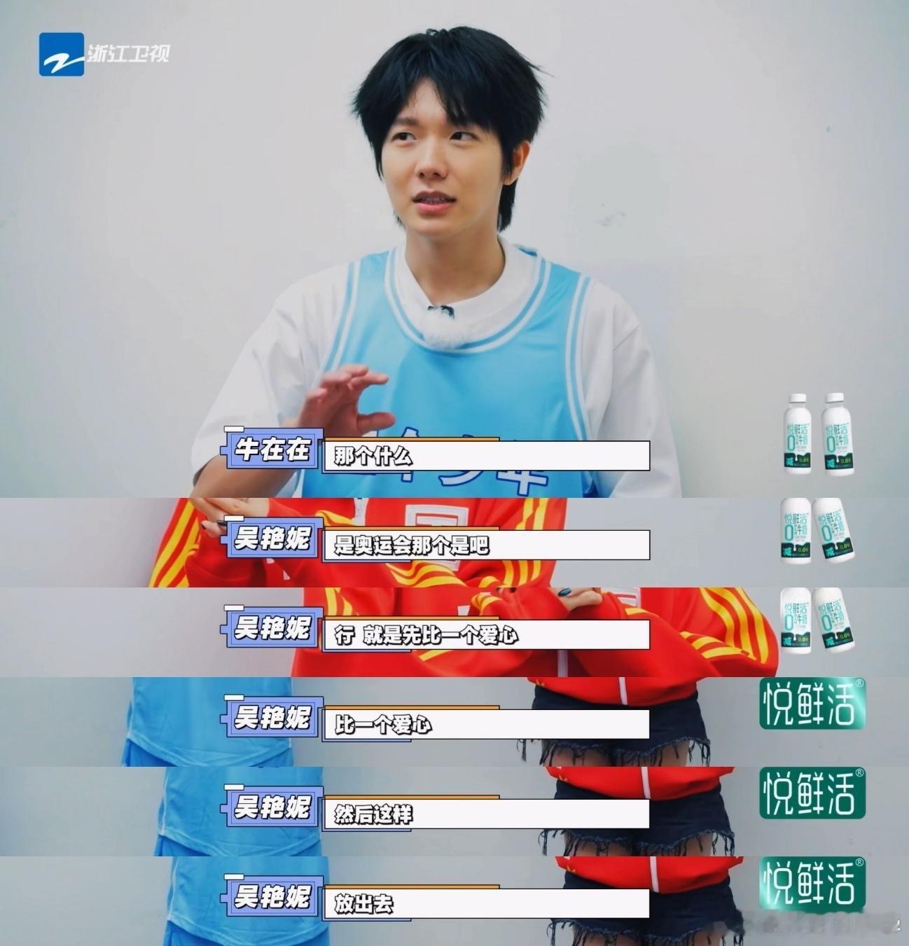 牛在在wink油到吴艳妮 谁懂啊!吴艳妮的奥运手势又飒又美,wink自带氛围感暴击,结果牛在在模仿时彻底跑偏,wink像失控抽搐,油腻值超标让吴艳妮都绷不住,旁边两人羞到不敢看,这波搞笑操作属实赢麻了!