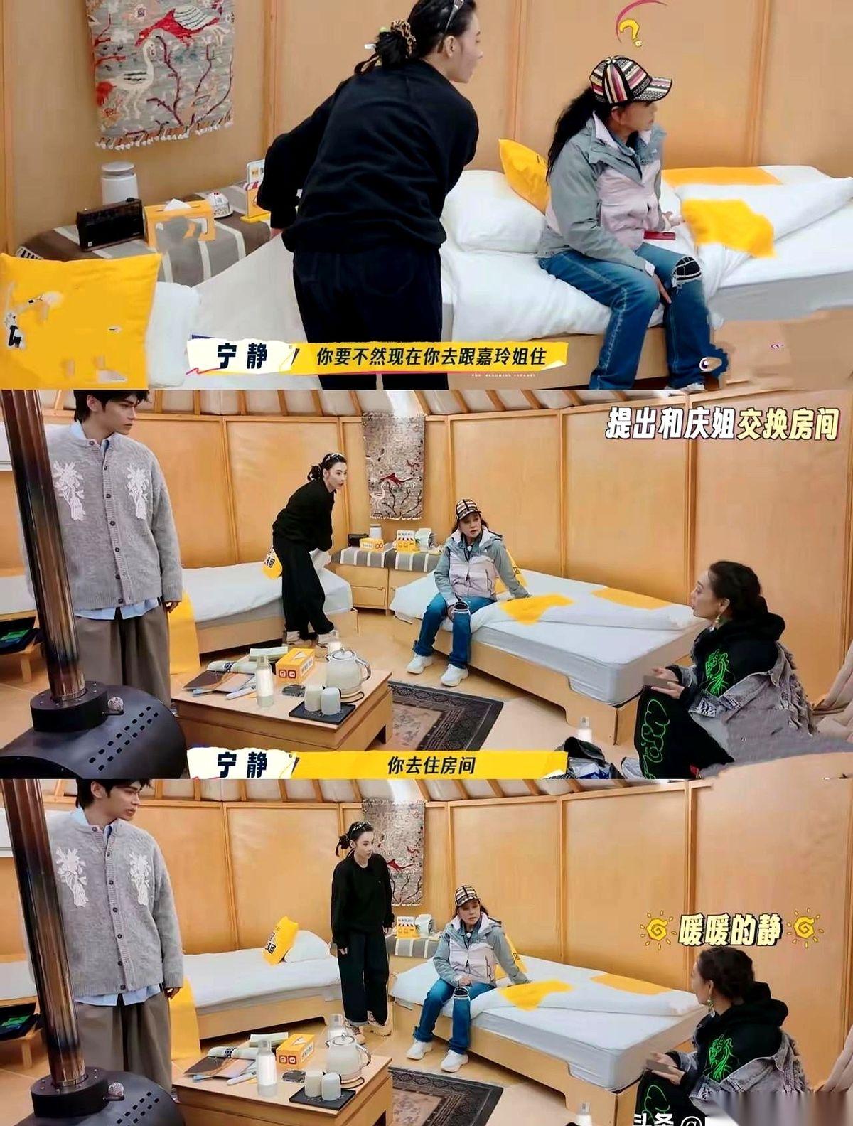 我以前真以为宁静是那种“别来烦我,再烦我弄死你”的大姐大。 浑身长满了刺儿,看谁都不顺眼,觉得全世界都得围着她转。 结果在这个节目里,我下巴都快惊掉了。 她哪里是来当女王的,她分明是来当“家政大姐”和“知心姐姐”的。 上面哄着刘晓庆、何赛飞这群加起来好几百岁的“老姐姐”,生怕她们累着、冷着、不开心了。 下面又得护着弟弟妹妹,操心这操心那。 这不就是上有老下有小本人吗? 活脱脱一个中年人的缩影。 在外面,你是披荆斩棘的“静姐”。 回了家,卷起袖子,你就是那个给一大家子人操持一切的顶梁柱。自己的委屈和疲惫?忍着,咽下去,明天又是新的一天。 真正的强大,根本不是咋咋呼呼的脾气,也不是谁都看不上的傲气。 而是当一堆人乱作一团的时候,她能定定心,说一句: “没事儿,有我呢。” 这三个字,比什么都值钱。