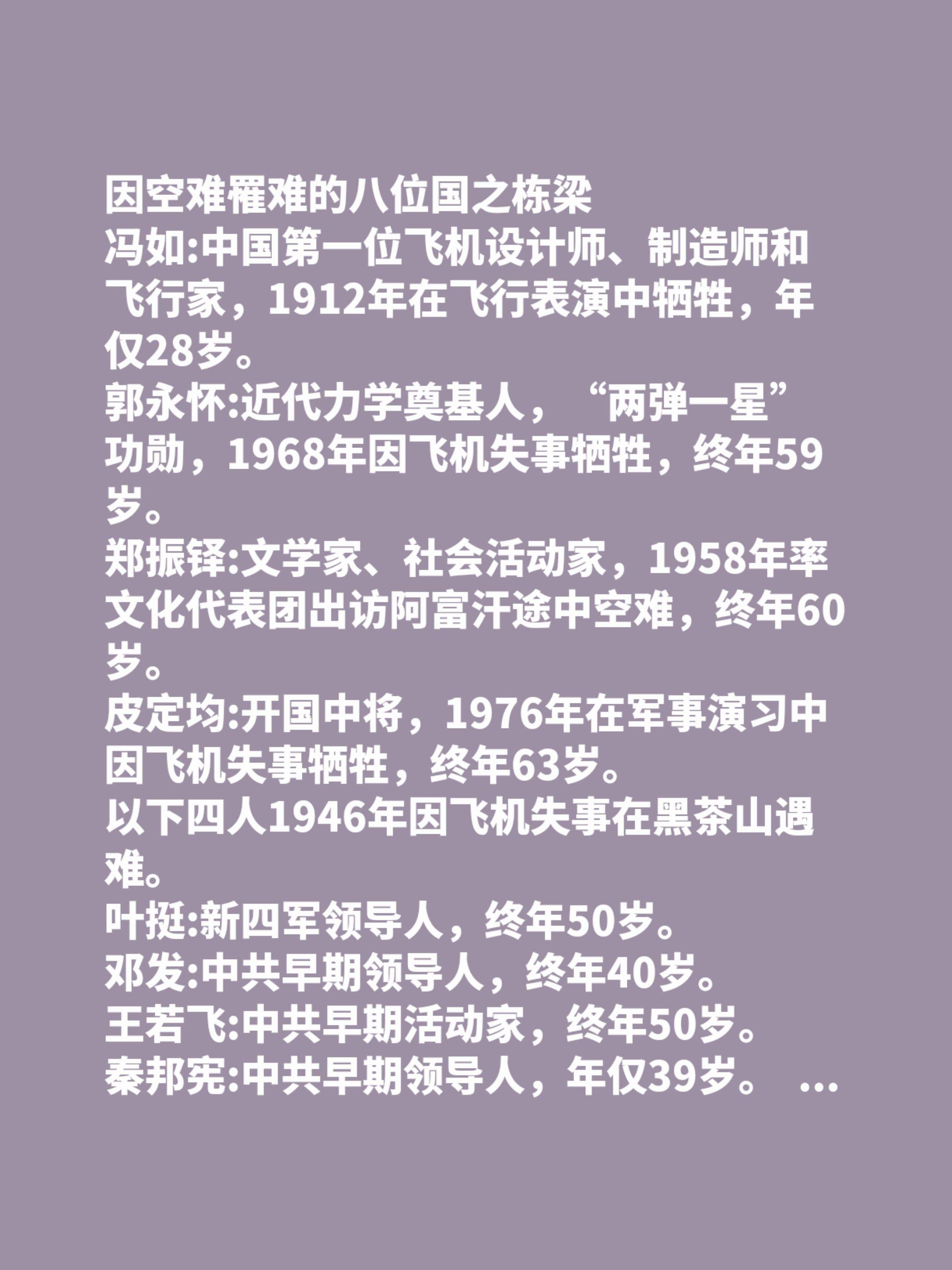 郭永怀:近代力学奠基人,“两弹一星”功勋,1968年因飞机失事牺牲,终年59岁。