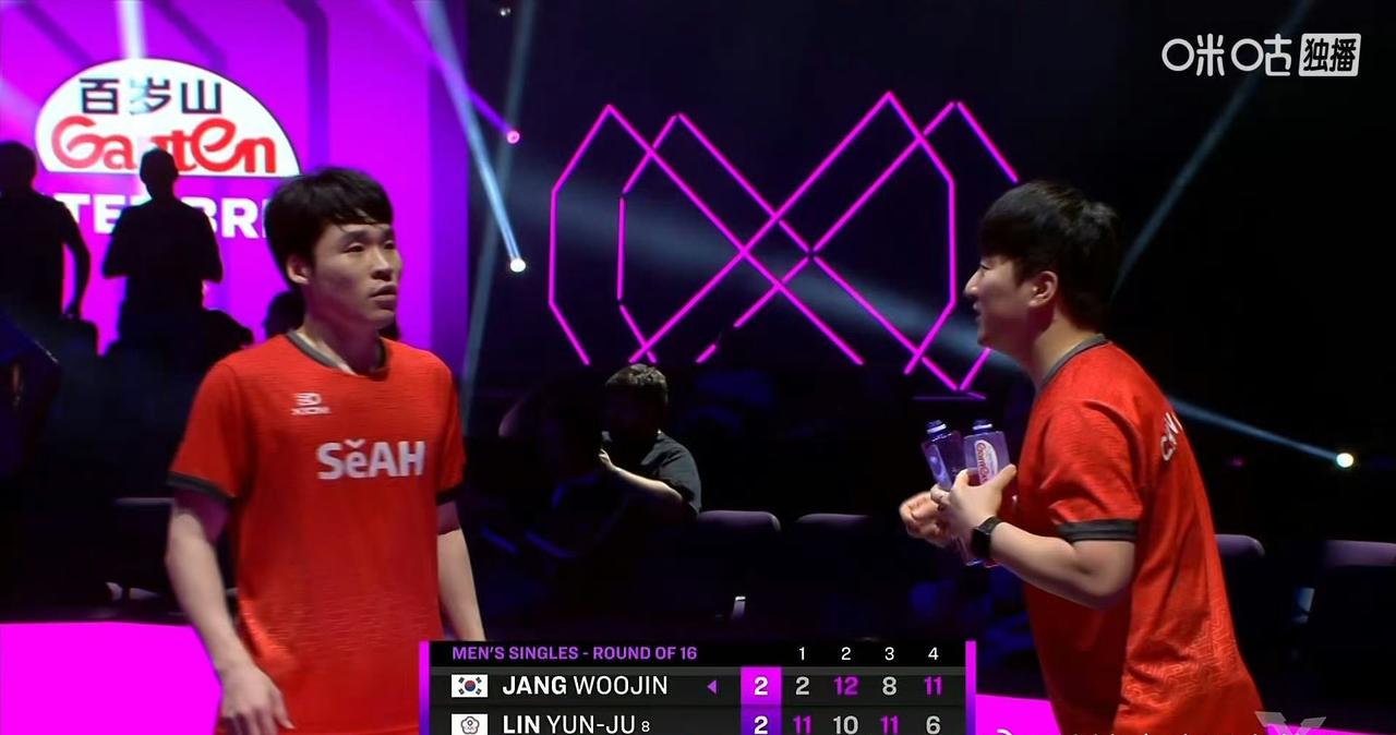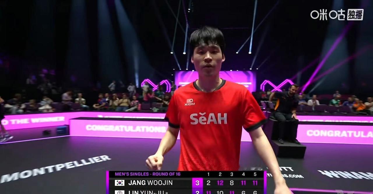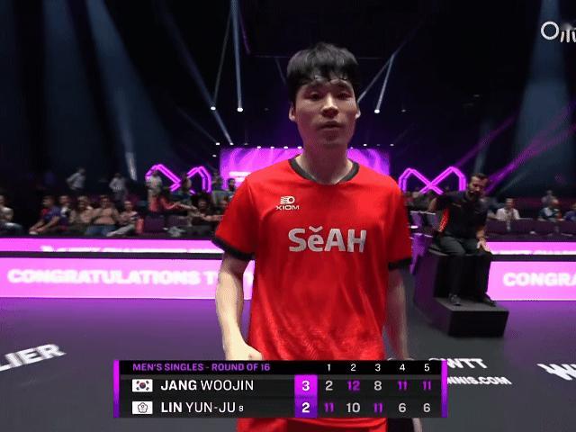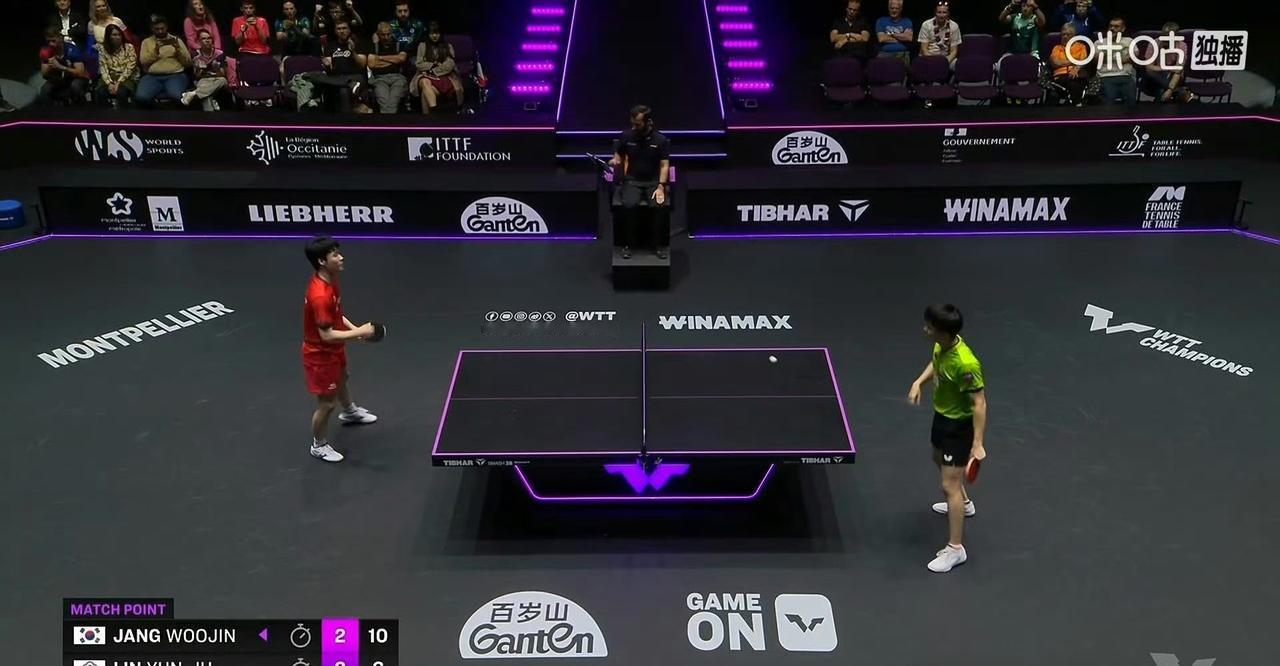 不可思议啊[捂脸], 你期待的冠军林昀儒也游走了! 今日凌晨三点半,一场2025WTT冠军赛蒙彼利埃站男单1/8决赛不可思议地结束了, 韩国老将张禹珍🇰🇷3-2逆转击败中国台北名将林昀儒,晋级男单八强!五局比分为:2-11,12-10,8-11,11-6,11-6。  林昀儒今天确实也打出不好少球,中远台相持也不落下风,但比起越打越疯的张无忌,儒将林昀儒确实没招了。 尤其是决胜局,林昀儒打得乱糟糟的,全给张禹珍算得死死了,小林的发球已经在乱发了,要么是长球,要么就出台,张无忌全是早早就侧身,然后一板过——算的准准的啊。 下一轮张禹珍将对战卡纳克VS李尚洙的胜者 。 继续看好戏哦[笑哭]。