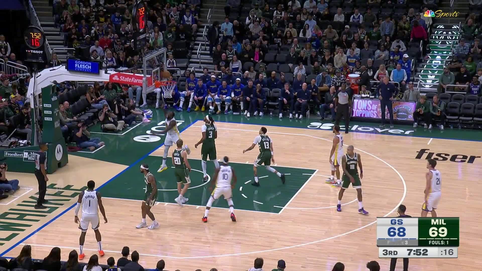 库里侧翼三分👌勇士40:49雄鹿。勇士vs雄鹿