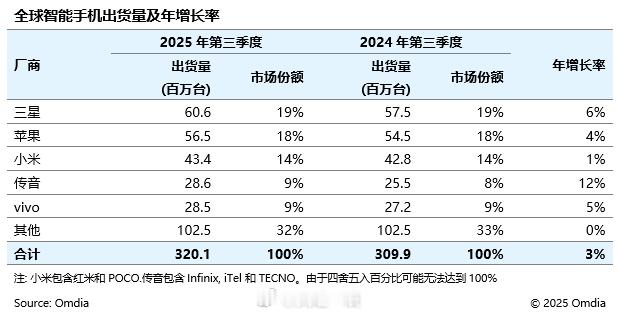 1、排名前三的品牌没变,还是三星、苹果、小米。小米国产第一,全球第三,这是连续多少季度有,有人记得吗?