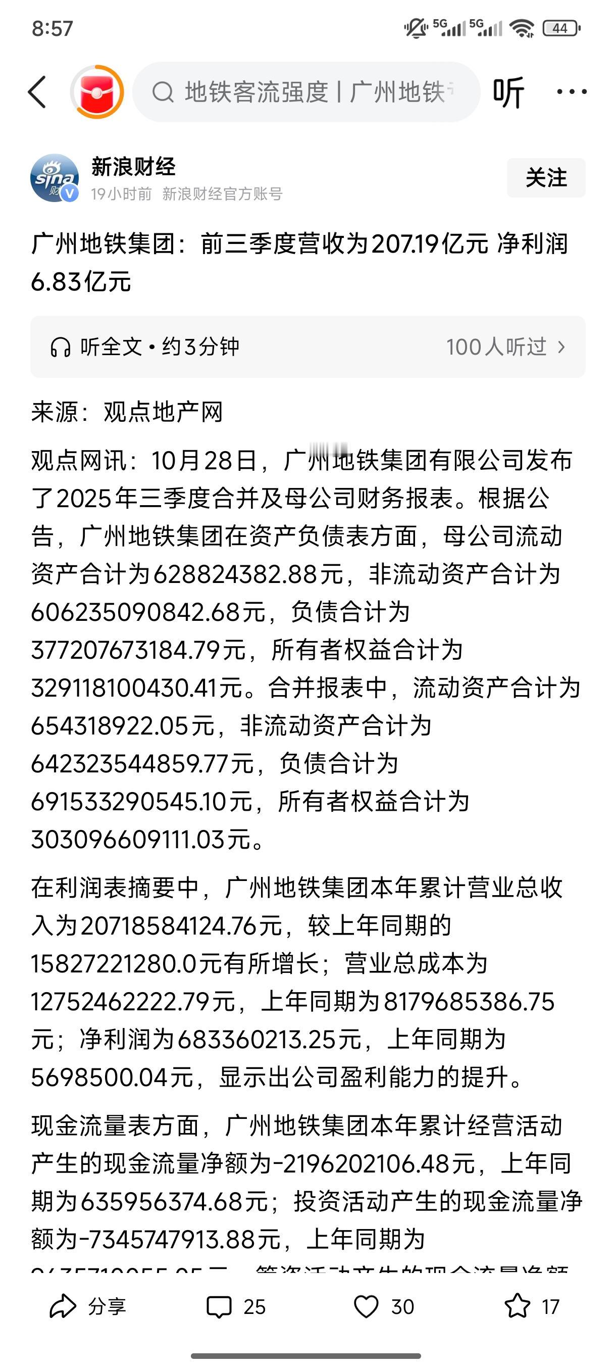 广州地铁集团有净利润,这在全国地铁公司来说应该难得吧!? 最近,广州地铁集团公