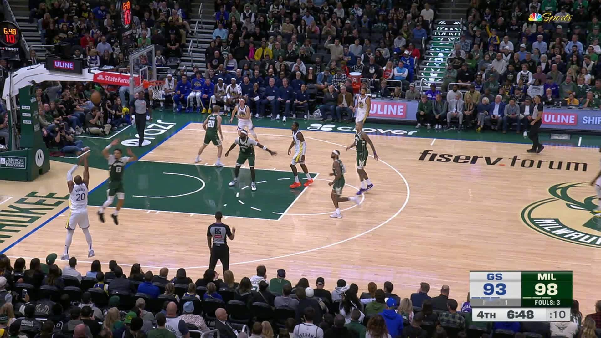 霍福德底角三分!!!勇士96:101雄鹿。勇士vs雄鹿