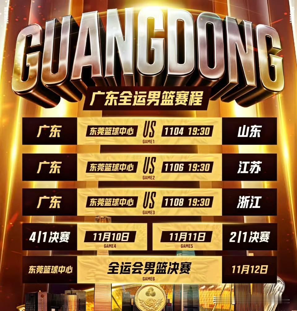 广东男篮全运全运会赛程表出炉!恕我直言,小组赛出线问题不大,但来到决赛阶段,强敌如林,北京、辽宁、四川都不是好惹的,并且辽宁默契度和北京队化学反应,都在广东男篮之上,特别是辽宁男篮人员构成都是家乡子弟兵,也是全运会所有参赛队里唯一全辽班!我大胆冒险猜测,双11的决赛是辽宁打北京,依据我多年对国内篮坛的知识储备和多年对cba的理解力