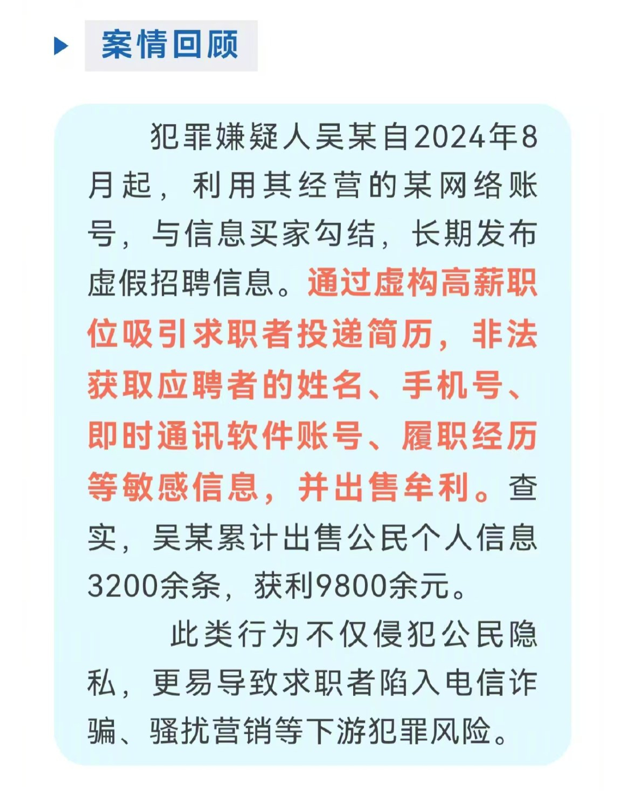 胆大妄为,利欲薰心,吴某这种人是侵犯公民信息链条的一环,必须将整个犯罪链条连根拔起,斩断伸向公民信息的黑手!看着是涉案金额不大,但性质极其恶劣,重判重罚很有必要!