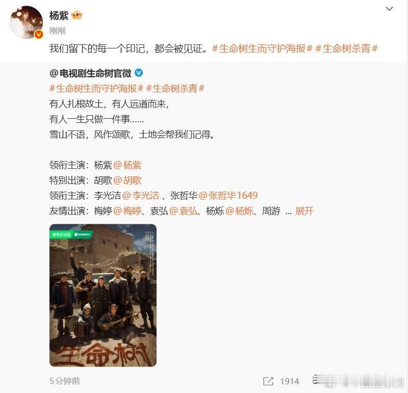 杨紫生命树杀青了 不过她高兴不了几天 因为她现在就是娱乐圈的“鸡排哥”,拍完你的,拍你的,拍完生命树拍玉兰花开君再来,场面还算控制的住。 杨紫说,我们留下的每一个印记都会被见证 最好的白菊,最好的杨紫 恭喜杨紫生命树杀青了