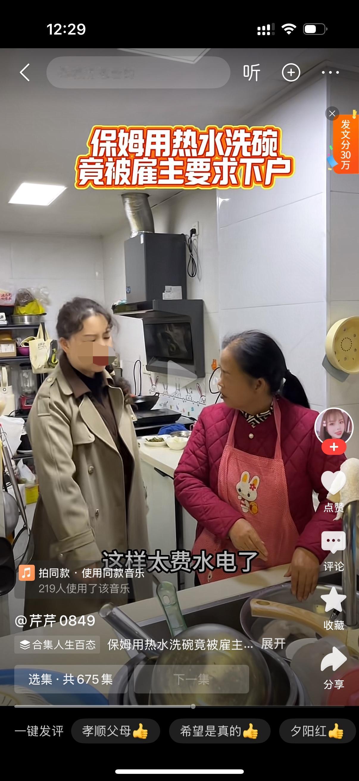 保姆用热水洗碗。女主人大呼小叫,阿姨,你怎么用热水洗碗?保姆满脸诧异,不用热水用什么?女主人说用冷水啊。保姆说,这么多油,冷水洗不干净。女主人走过来,把热水关了,说这样太费水电了,水电费多贵啊。你下户吧。保姆嘟囔,这么抠下户就下户。真是不理解,请的起保姆,却用不起热水,奇葩的雇主。