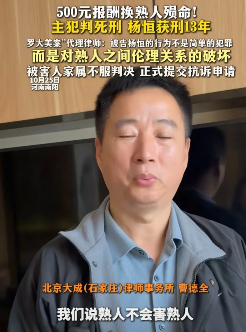 罗大美三个被告竟然全部上诉了,余金生上诉意料之中,不就是拖延点时间,想晚几天不就这点心思,至于沙玉娇,作为余金生曾经的枕边人,最多呢也就多蹦跶几天。 律师说,对于沙玉娇和杨恒这次判的是抢劫罪,对于杀人这个事儿,他们是有责任的,磨刀和递刀的人,难道就不用负责任了吗? 杨恒把罗大美交给两个恶魔的时候,他那种积极放任的行为和态度已经超出了抢劫的范畴了,他们对于整个的行为都是设有关联的,只是责任划分的问题。 大美的妹妹本来就觉得对于杨恒的判罚轻了,这下好了,既然有二审的话,希望能够圆了大美妹妹,他们家人的愿望吧。