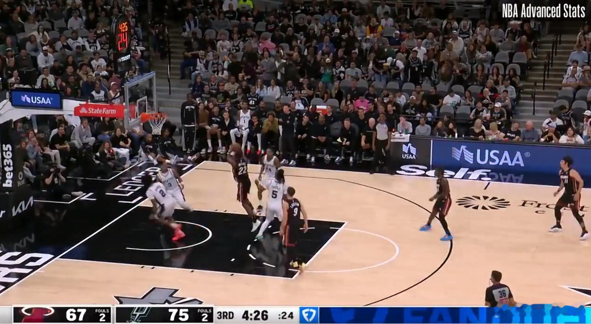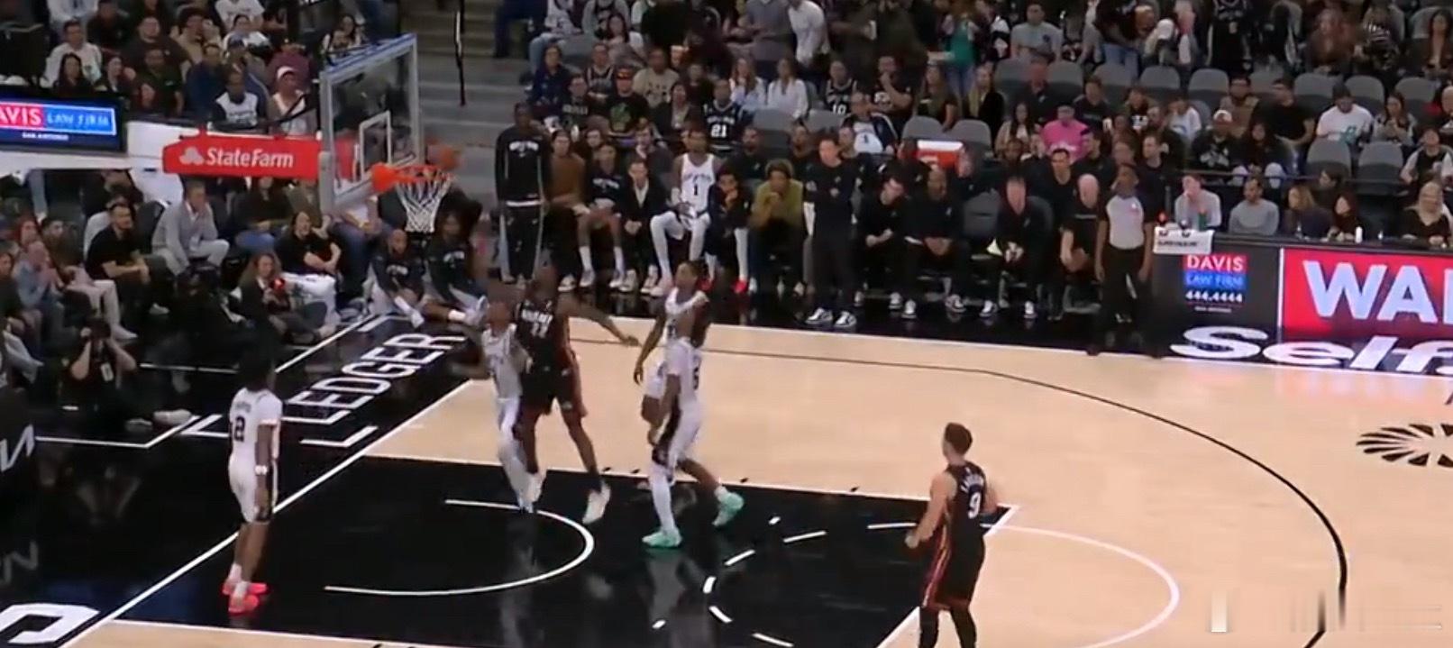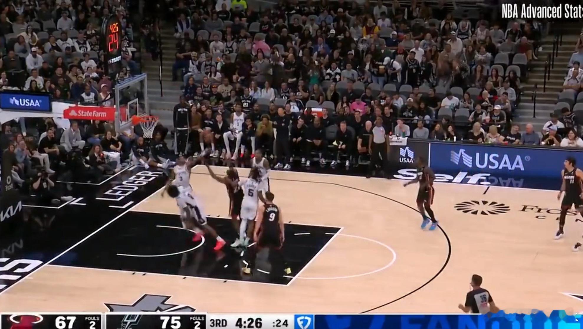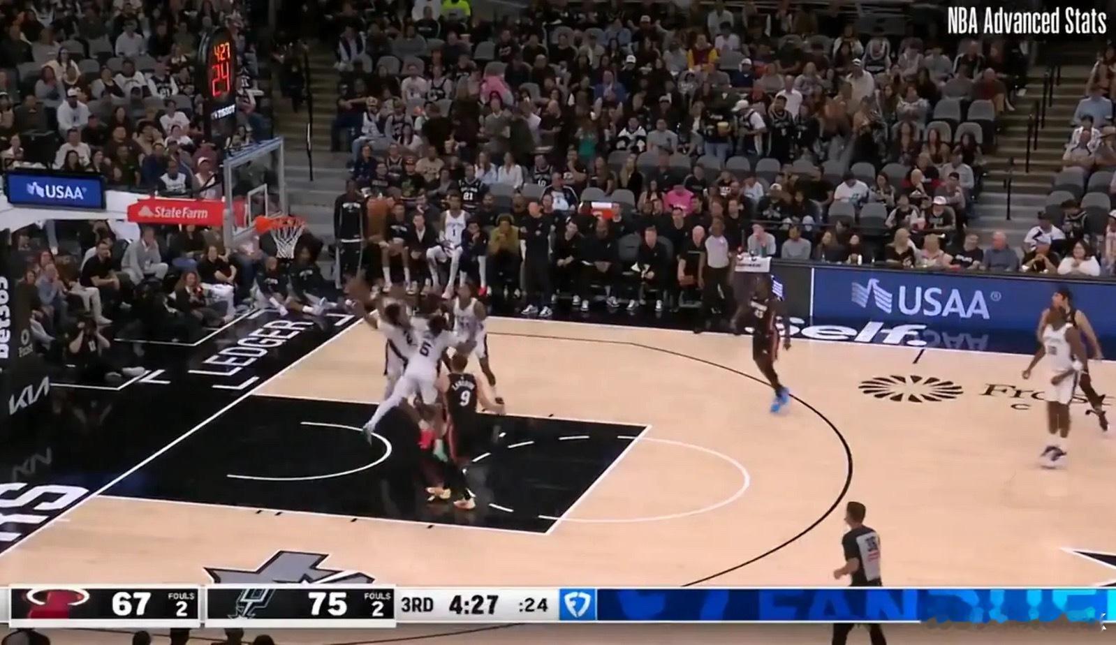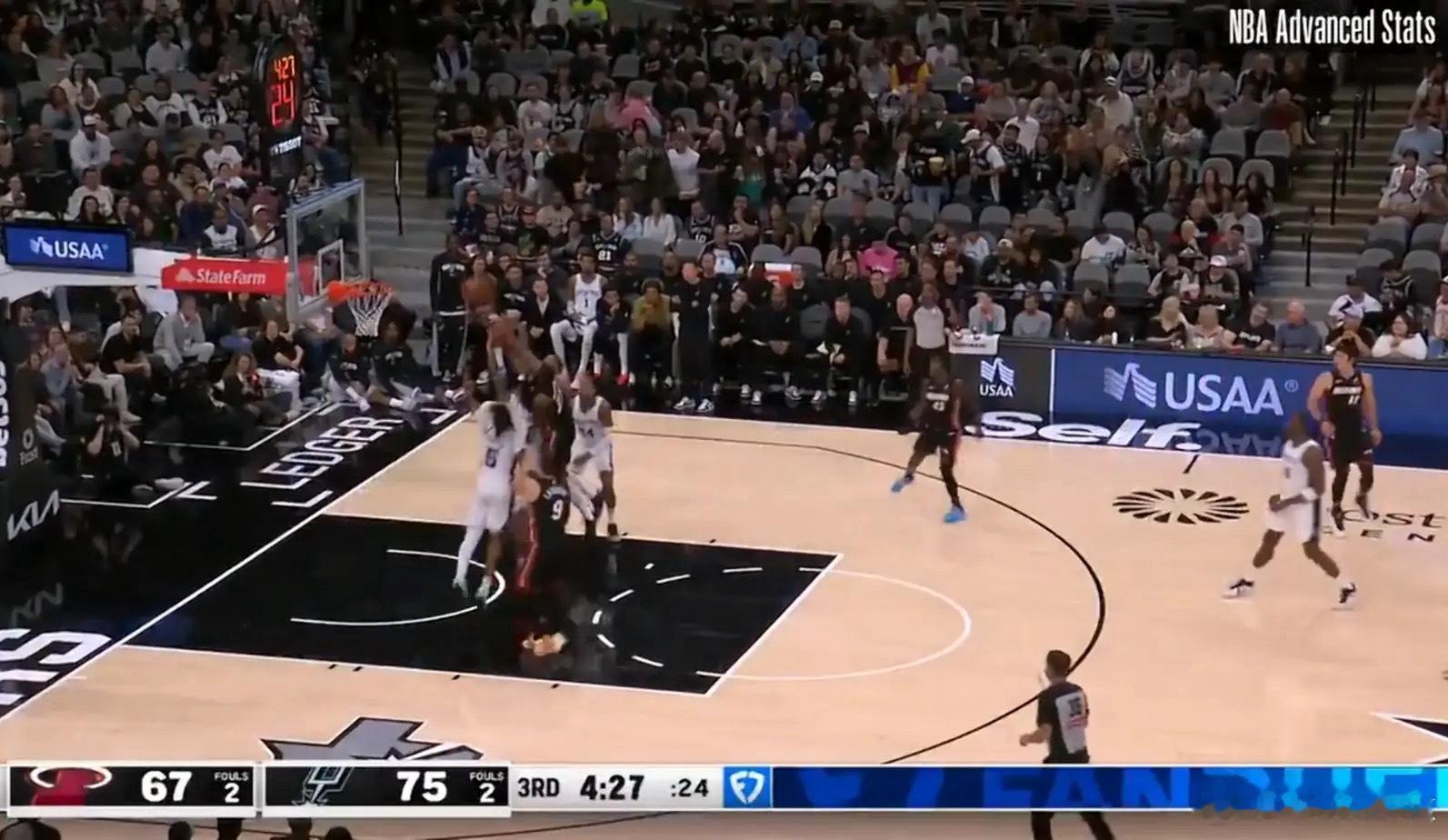 嘴哥今天最帅一球,在马刺人群中1抢4拿下进攻篮板,随后上篮得分!马刺开局5连胜热火vs马刺