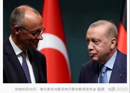 埃尔多安当面质问默茨:以色列杀害6万加沙无辜民众,难道德国看不见了吗? 据报道