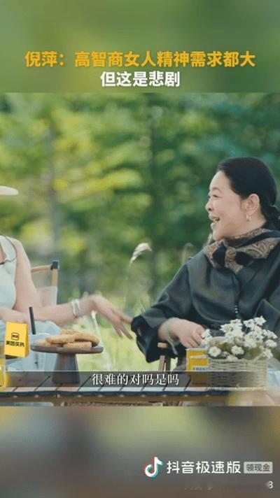 倪萍和李施嬅的这段对话告诉我们 一个女人你可以漂亮,也可以优秀 但千万不能把精神需求寄托在男人身上。李施嬅问倪萍她会幸福吗?倪萍说“会很不幸福,因为你是一个内心需求量特别精神大于实质的女人”。 倪萍还说智商高的女人精神需求都特别大,这是悲剧。 其实精神需求大不是悲剧,但把精神需求寄托在别人身上就是悲剧。