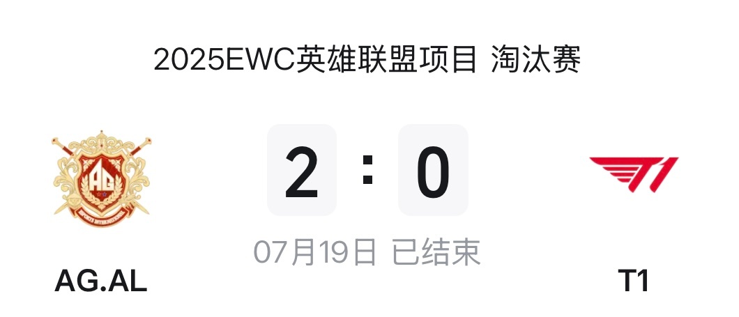AL在ewc沙特杯中2-0 T1 是首个在国际赛事中零封T1的LPL队伍