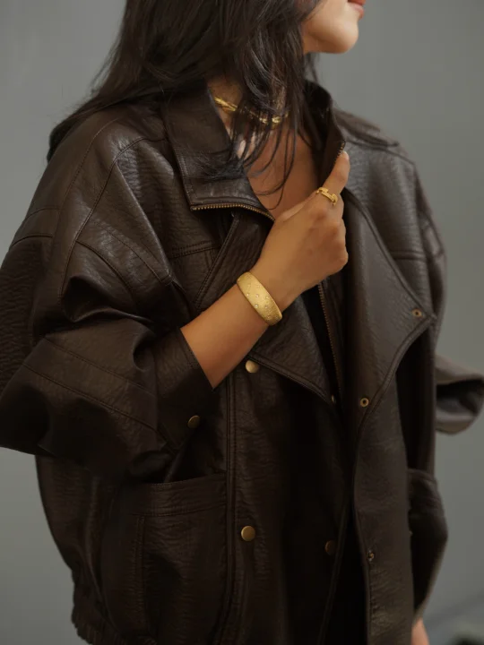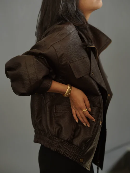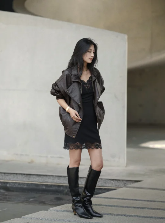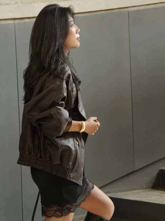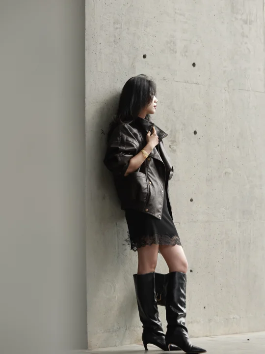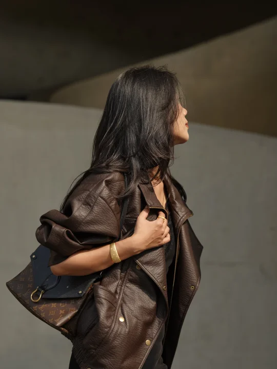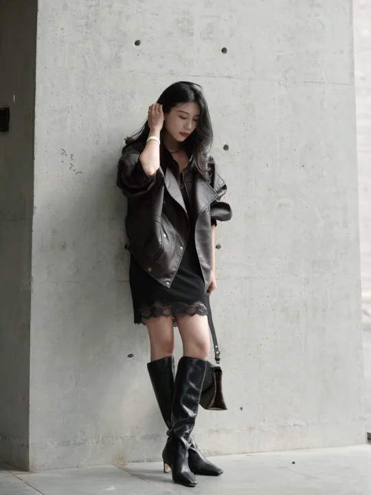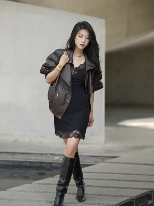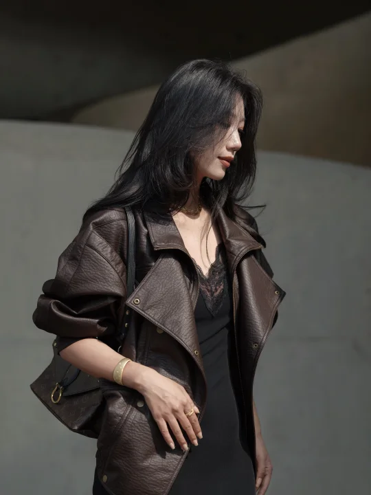 衣橱里那件oversize棕色皮衣,是真皮的随性灵魂。 廓形洒脱,衬出飒爽身影。 前天系条丝巾,配西裤,是优雅文艺范儿; 昨天搭配百褶裙,戴贝雷帽,瞬间复古如老电影; 今天内搭吊带裙,踩着着长靴,又是摩登街头风。 一件皮衣,无限可能,它并不设限。 正如我始终拥抱新鲜、敢于尝试的生活姿态。 风格由我,自在穿行于各种场景之间。