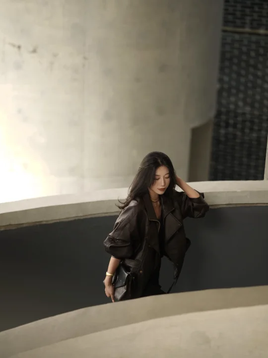 秋冬的皮衣~阴雨天拍照📷的氛围感今天穿什么ootd