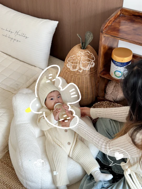 🔑此阶段奶仍是主食。可尝试先喂奶再补辅食,或适当增加喂奶频次。保证每日总奶量在600-800毫升左右即可,不必过于焦虑,可以对照着宝宝奶量表喂养~