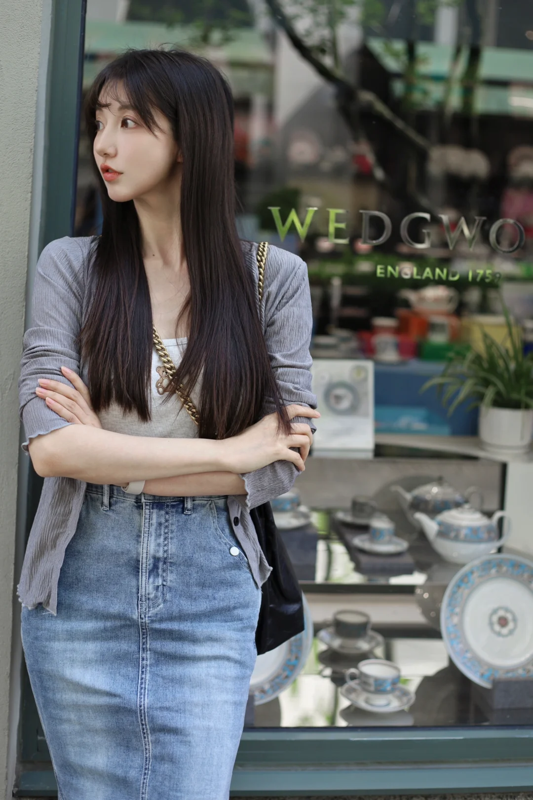 1988年,27岁的陈冲在上海街头,好喜欢这种年代感,穿的衣服现在也不过时
