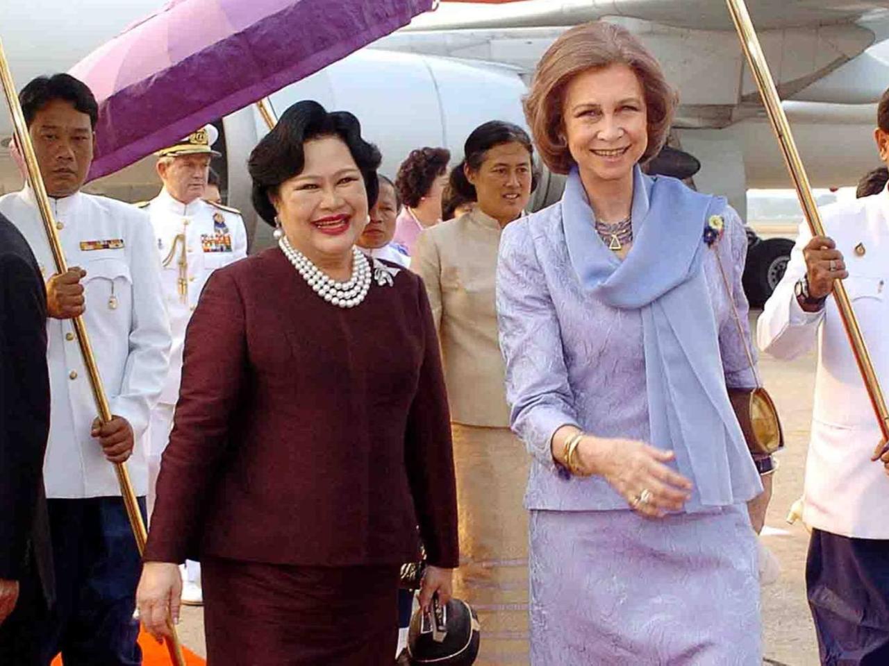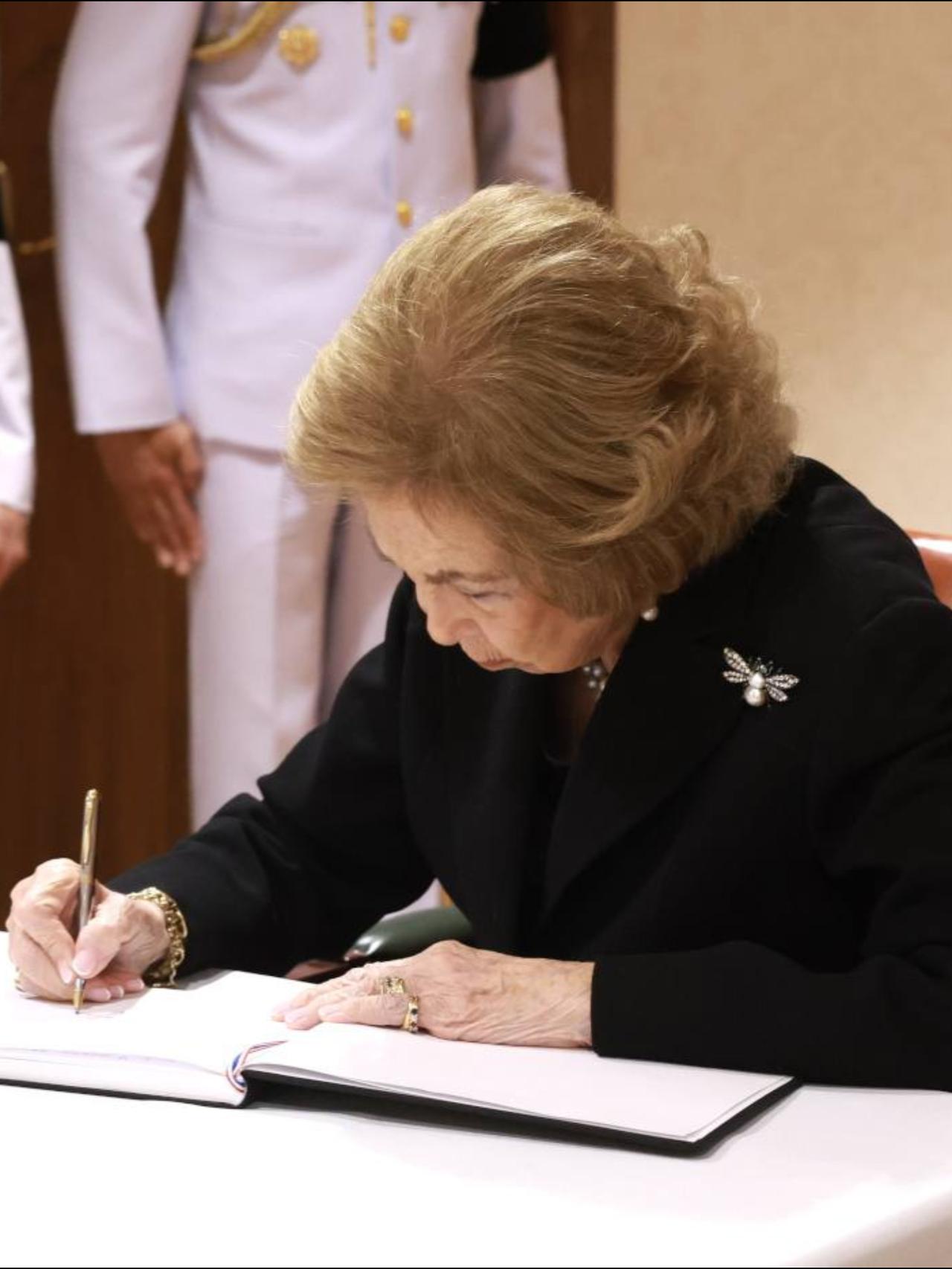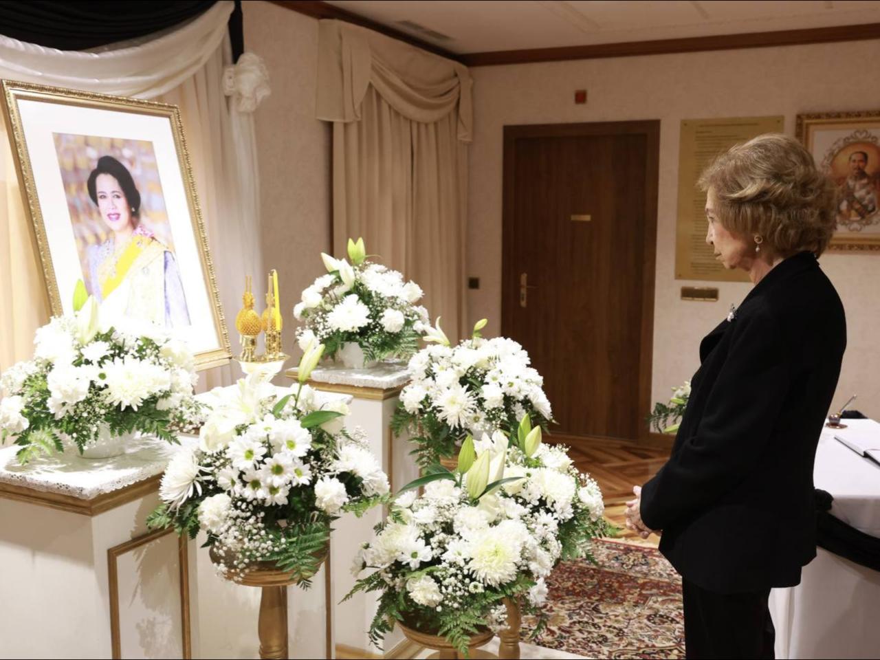 西班牙太后出席国葬,悼念诗丽吉太后 西班牙索菲亚太后,前往泰国驻马德里大使馆,在吊唁簿上签名,沉痛悼念已故泰国诗丽吉王太后,期间受到临时代办苏帕玛斯·尤尼亚西的热情接待。诗丽吉王后与索菲亚王后情谊深厚,长期友好,多次展开私人与正式层面的互访交流。
