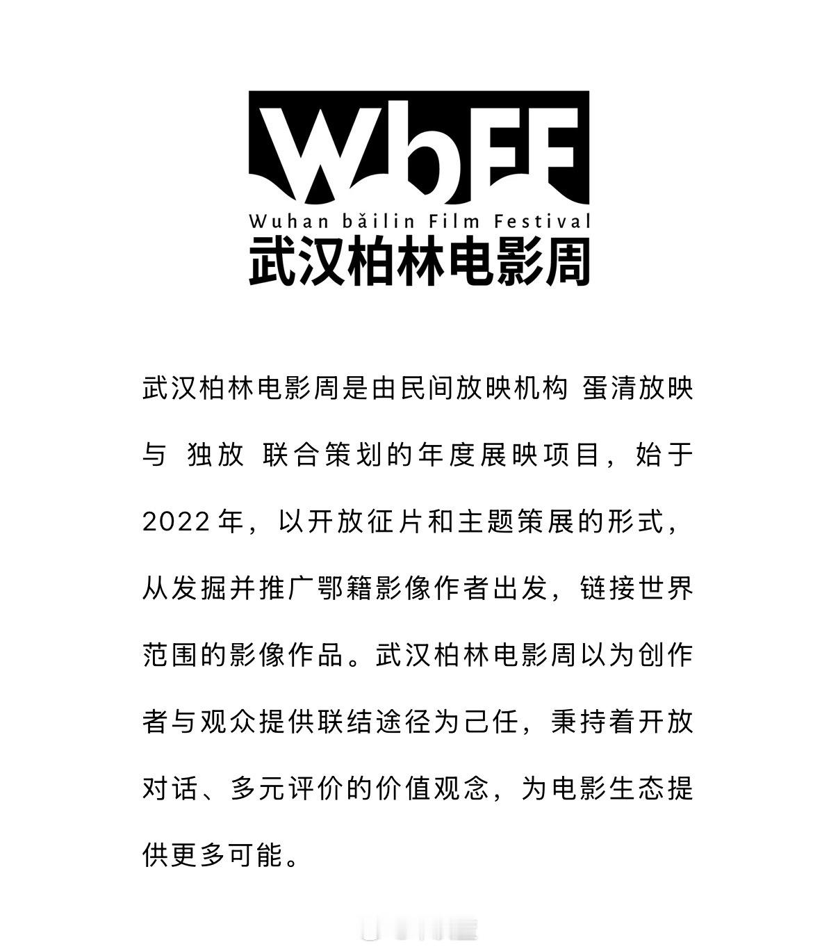 作为四年前第一批影展众筹参与者,也很高兴看到“武汉柏林电影周”越来越好,已经成为全国各地(包括港澳台)影迷纷至沓来的独立影展。“柏林”与“德国柏林电影节”并无关系,只是因为武汉本地有一站地铁名叫“柏(bai)林”。