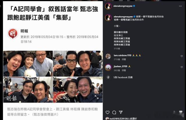 甄志强离世 江美儀一周內兩摯友猝逝 心碎發文悼念:第一個平面廣告係同你拍