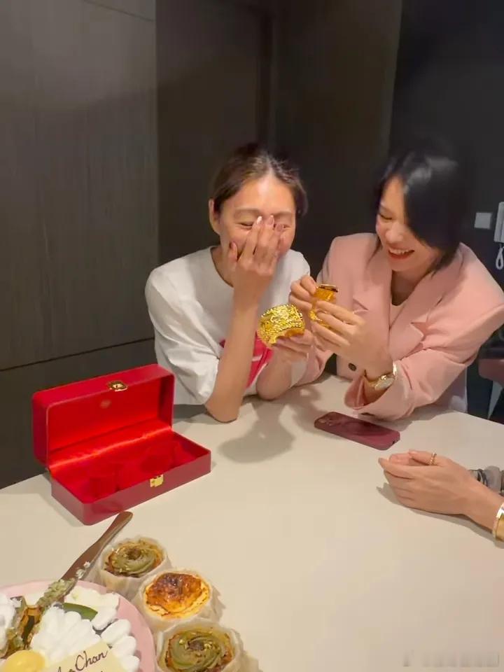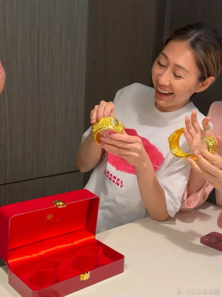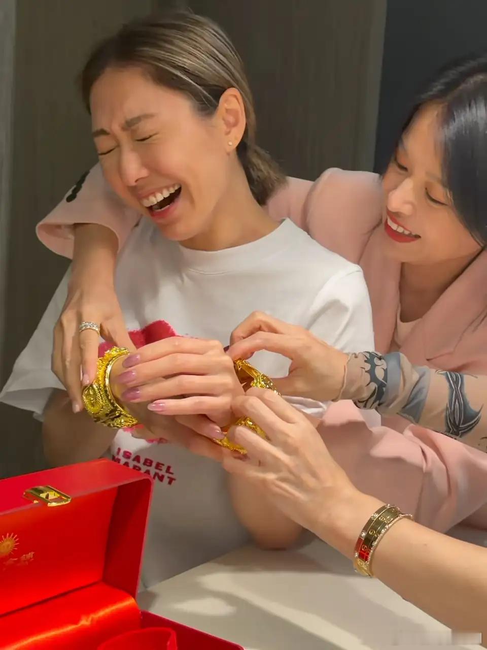 她發文表示「好姊妹果然係講得出做得到😂佢真係打咗對龍鳳鈪俾我做禮🤩😍🤣😝 無論金價有幾高,我都會好好收藏!Thank you Sis!~