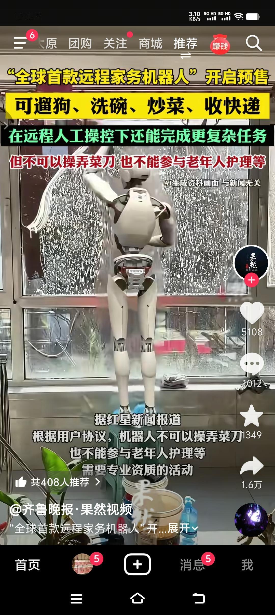 全球首款远程家务机器人开始预售,售价2万美元,折合人民币约14万,月租金499美元,折合人民币约3500元。可以远程操控完成各种复杂任务,比如遛狗、洗碗、炒菜、收快递,还能准确识别宠物粮食,并完成喂养动作。但不可以操弄一些危险性钝器,比如菜刀、剪刀等,也不能参与一些需要专业资质的活动,比如老年人护理等。 机器人代替人工,智能时代的到来,到底是好事还是坏事?其实任何新生事物的出现都有它的两面性,不能一口否定,更不能停止前进。只能说智能想彻底取代人工,最起码目前来说不现实。