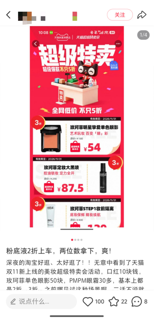 【天猫双11美妆大牌特卖2折抢】100块出头带走玫珂菲MakeUpForEver、用一杯奶茶钱带走1支秋冬口红,这泼天的富贵你接住了吗!天猫双11大牌特卖会美妆快消品牌产品低至2折,现在打开淘宝搜索“美妆超级特卖会”,就能一键直达活动页面,手快有手慢无!