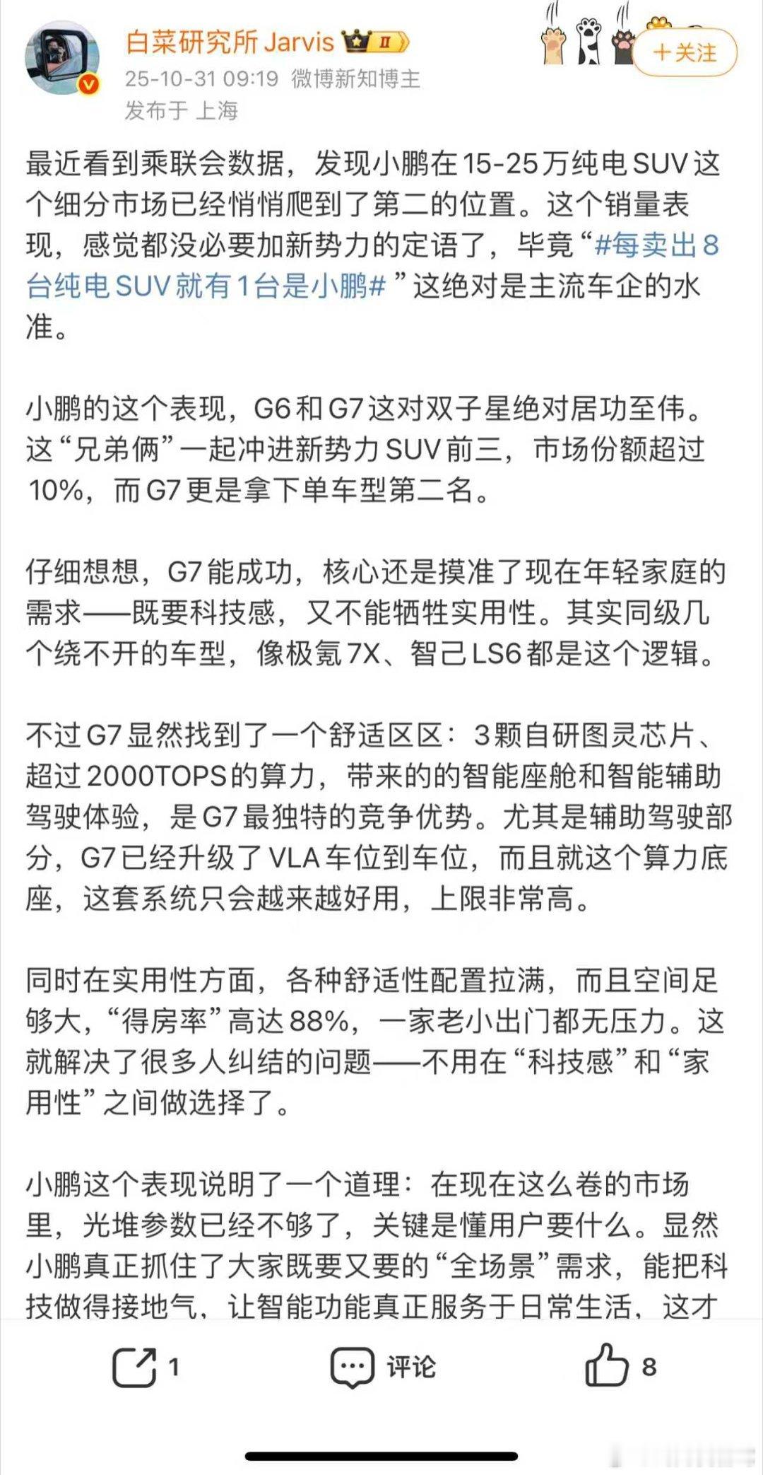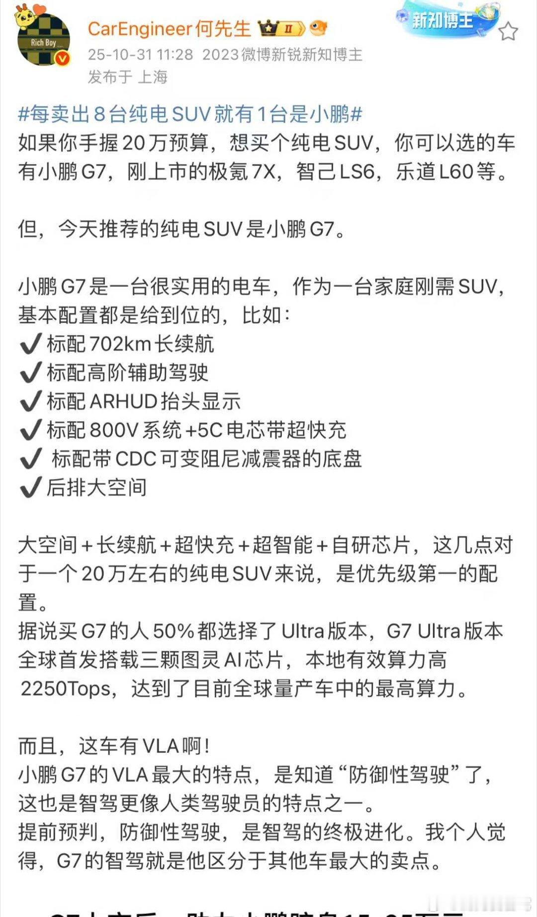 每卖出8台纯电SUV就有1台是小鹏