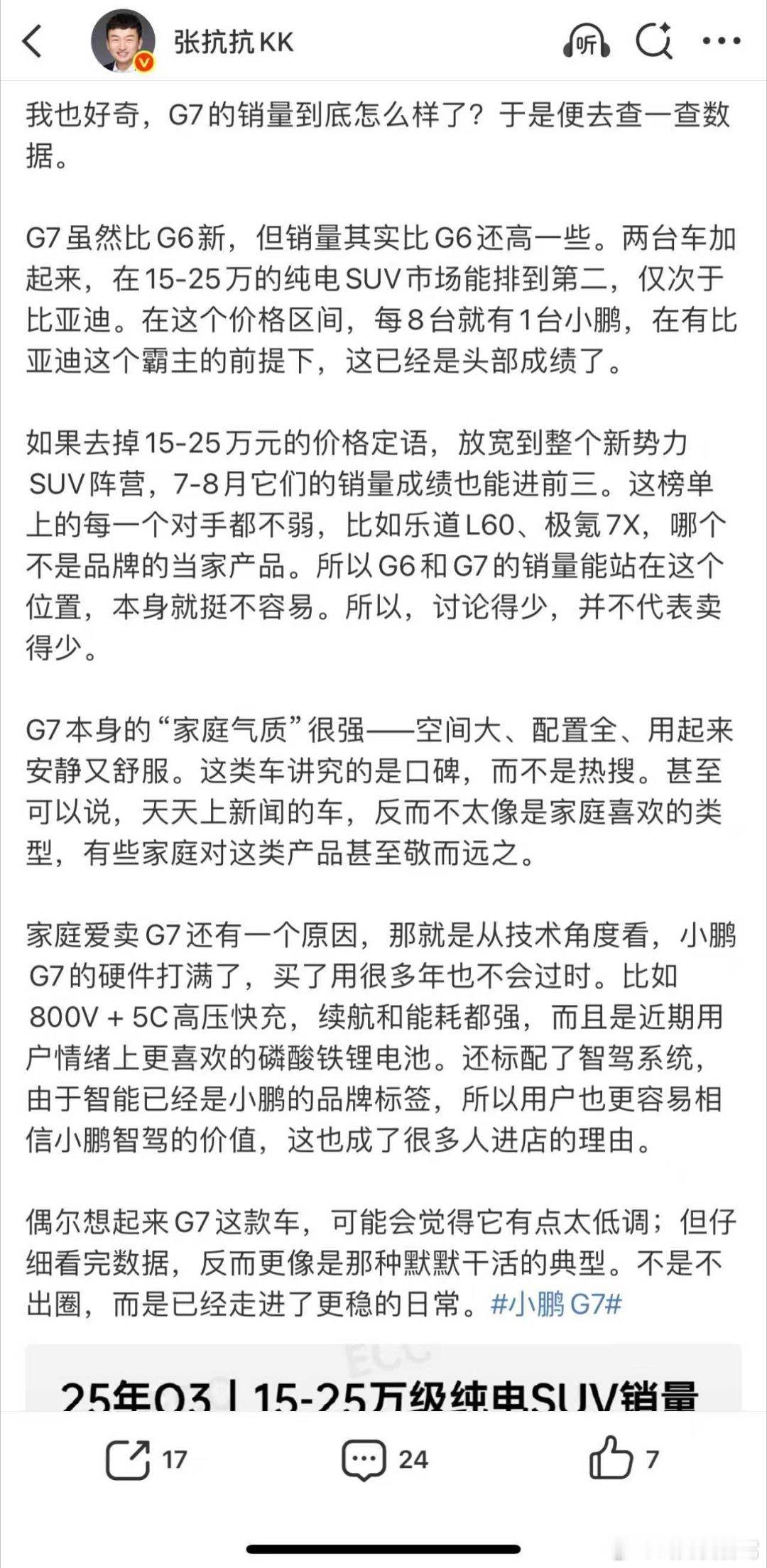 哈哈,想不到吧G7卖了这么多。作为车主表示很欣慰。这次最大的缺点就是没有特别长的长处,但是最大的优点,也是没有短处。一个字,绝