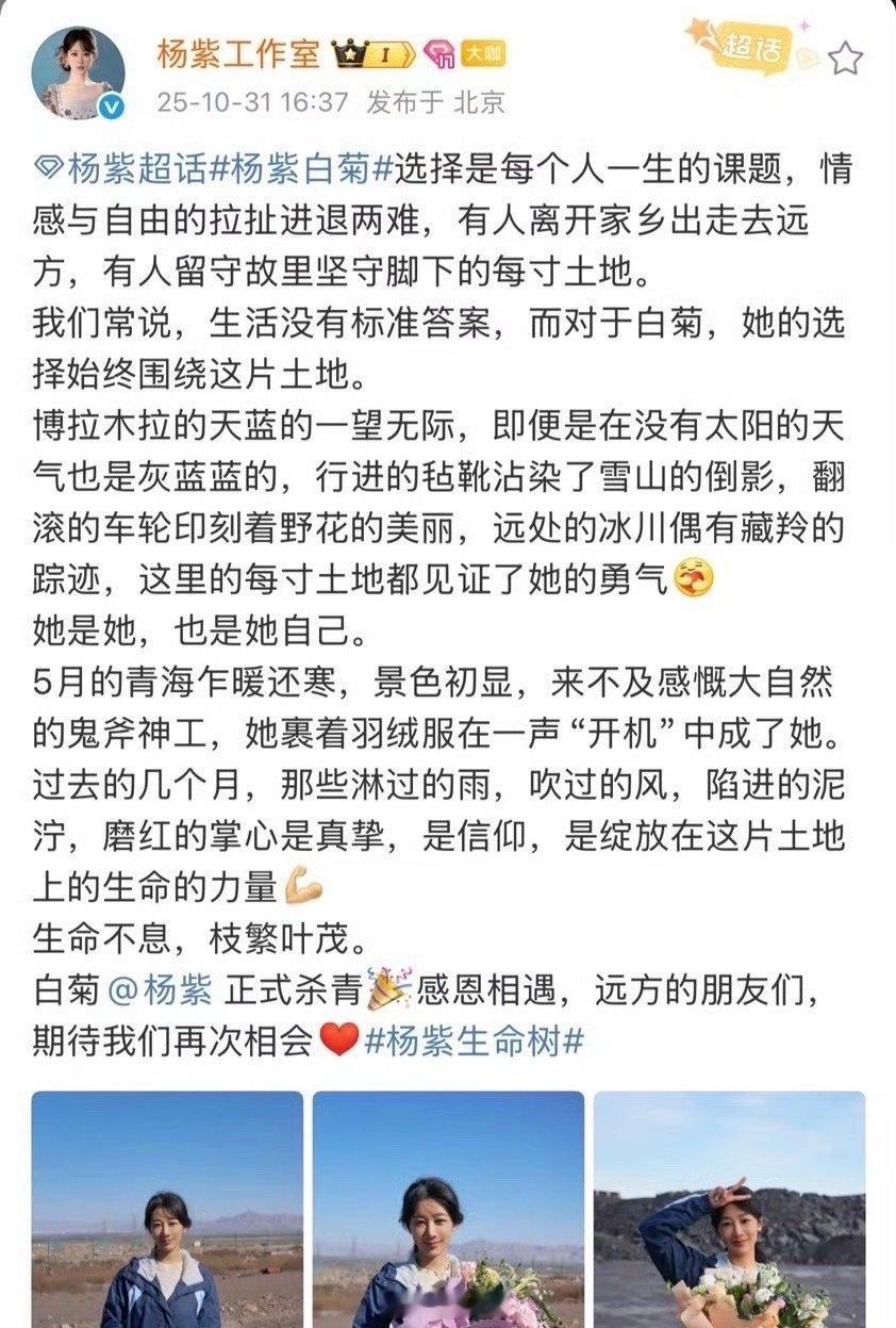 杨紫主演的电视剧《生命树》今日杀青,这也是杨紫出道以来的又一部大女主剧,杨紫在剧中饰演女主白菊,看得出来杨紫为了这部剧下了不少功夫,阵容和剧情很是带感,坐等新剧开播啊!
