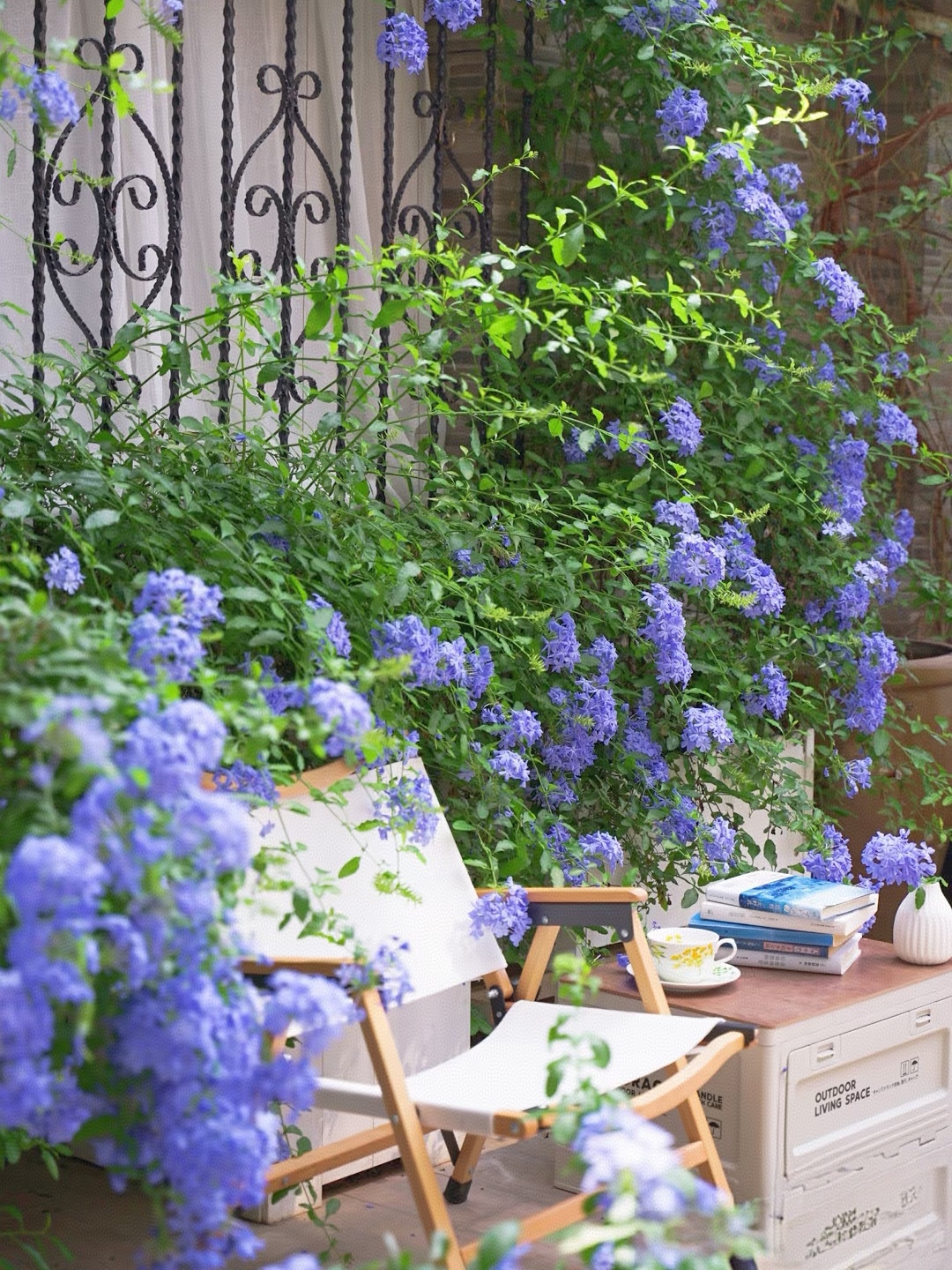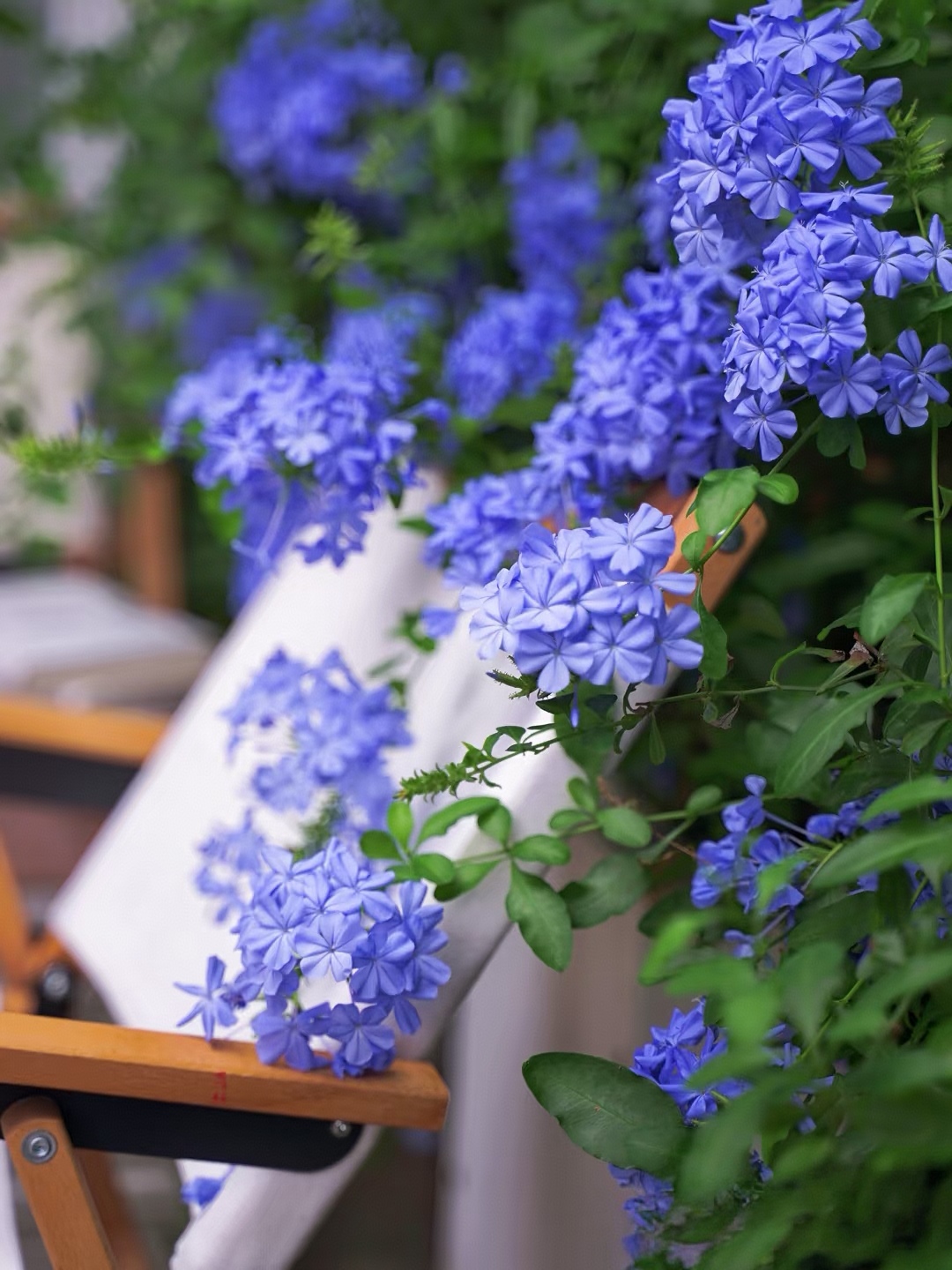蓝雪花的花是清透的天蓝色,花瓣像迷你小喇叭,开成簇时像从童话里流出来的蓝色瀑布,夏天摆在阳台,风一吹满是清凉感。 蓝雪花不仅好看,还特别 “省心”,耐热又耐晒,夏天 40℃也能照样开花。 【栽种技巧】 想让蓝雪花多开花,要学会 “掐尖”。 等枝条长到 30 厘米时,用剪刀剪掉顶部 5 厘米,逼它冒出侧枝,侧枝越多,开花越密。 浇水,别等盆土全干,摸到表面 2 厘米发干就浇透,夏天可以往叶片喷点水,降温又增湿。 蓝雪花特别容易扦插,剪一段 10 厘米长的枝条,去掉底部叶片,插在泥炭土 + 蛭石(1:1)里,保持盆土微湿,2 周就能生根。 秋天扦插,明年夏天就能收获满盆蓝色浪漫。 💡这里是“种在阳台上”,一个纯分享阳台种植技巧的地方。 欢迎台友也来分享你在阳台上的种植故事,种在阳台上需要你的加入,老办法,来找台长吧! 台友若能找来,就是一种信任。 台长肩负信任前行,必不辜负!