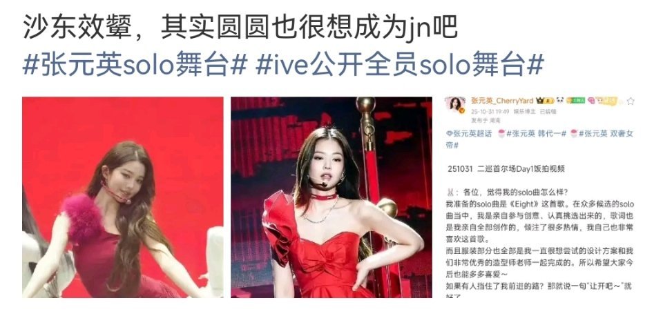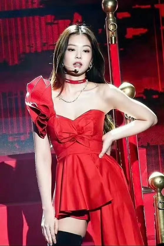 张元英和Jennie这造型也不像吧,只是都是红色单肩而已,为啥说张元英东施效颦?