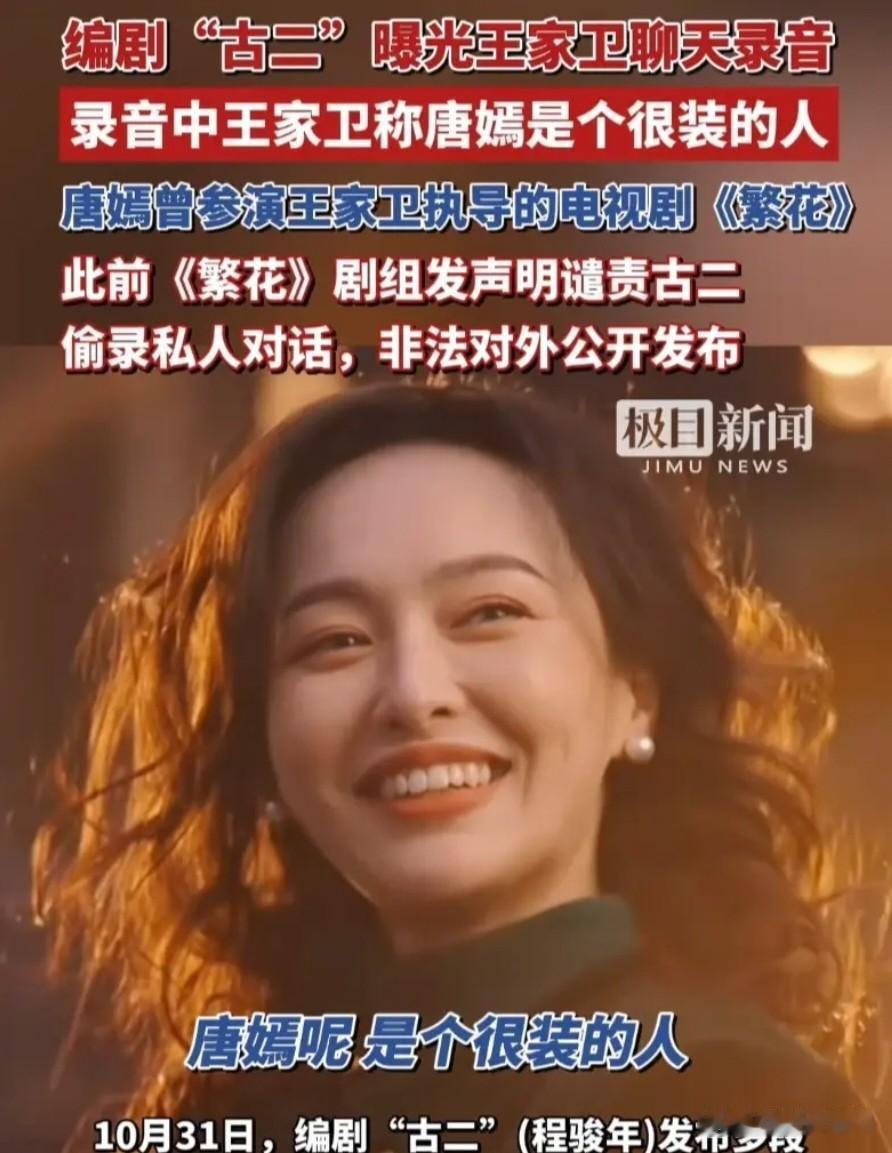 “编剧”古二曝录音:王家卫说唐嫣是一个很装的人,这到底是怎么回事哦,有知道实情的吗? 唐嫣还是不错的啊,身材、脸蛋、才华,能力,还有人说她默默资助藏族学生,即使装一下又怎么样呢。 有网友评价:说别人装,说明她有东西没有让他得到或者有图的地方没有轻易让他满足。 墨镜一会儿说陈道明,一会儿说游本昌,现在又说唐嫣,到底是谁装呢? 原来大导演也喜欢背后蛐蛐人,哈哈,释怀了。