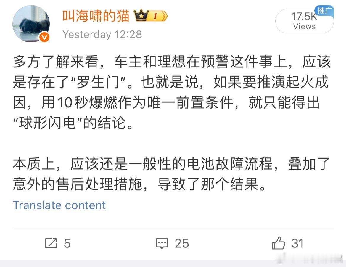 理想声明中也说,不是几秒爆燃,提前了4小时预警