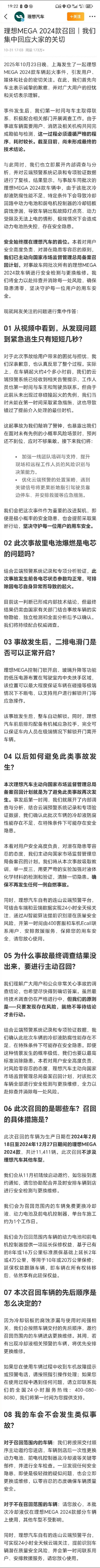 理想就车辆起火道歉MEGA2024款电动汽车部分召回MEGA2024款电动汽车部分召回理想就车辆起火道歉理想召回部分MEGA