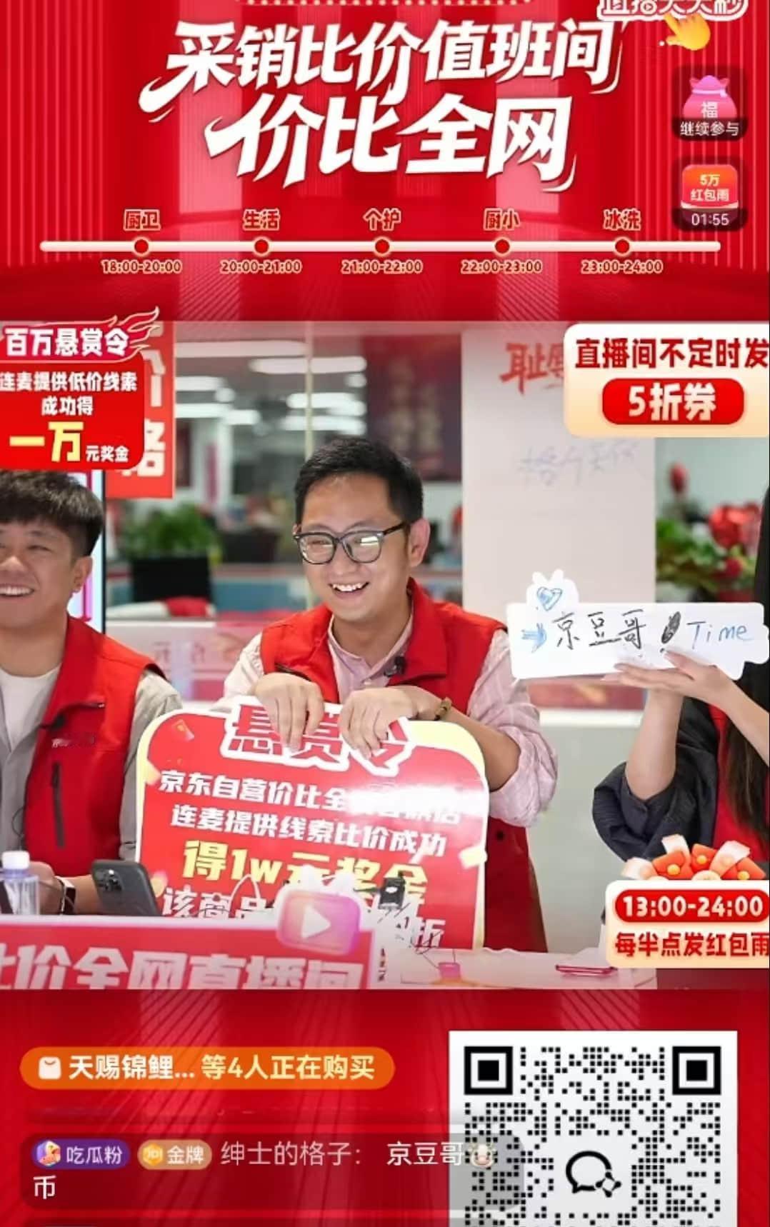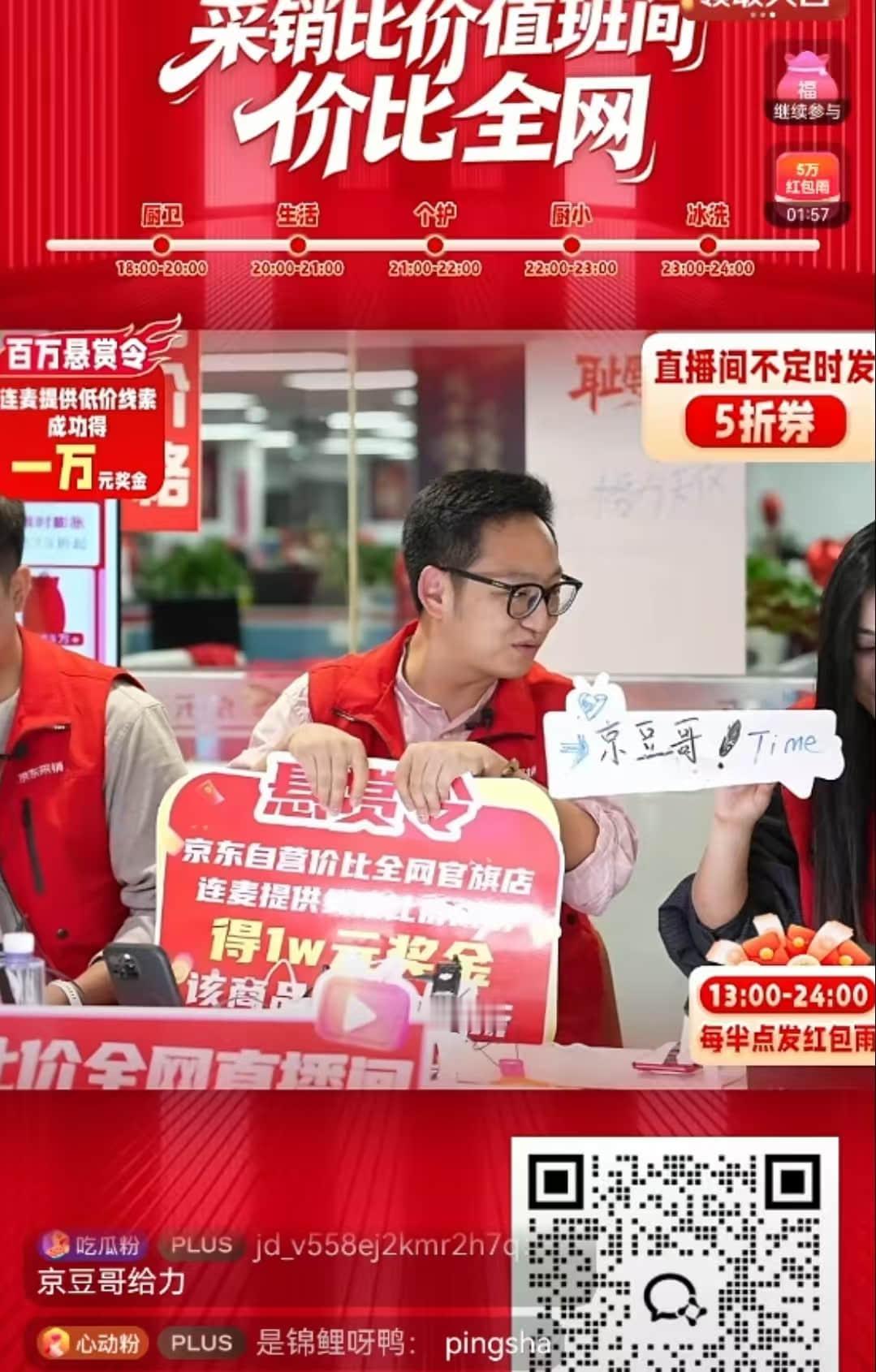 京豆哥直播半小时怒发600万 京东采销直播间今晚是捅了比价人的窝了吗?想进去看看热闹,结果连麦通道直接被挤爆了。毕竟上京东搜【家电比价】,连麦家电家居采销直播间,提供低价线索就发1万,还有家电家居爆款5折,谁不心动啊!感觉全网的省钱达人都闻着味儿来了。 京东真发钱每人1万全网比价 采销直播间比价到账1万速来围观: