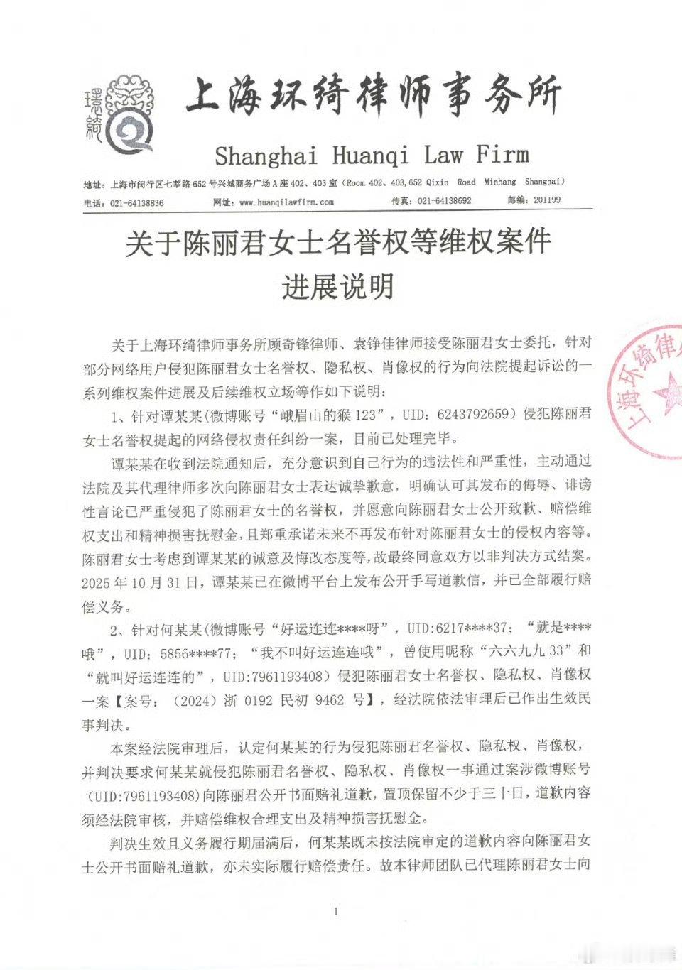 陈丽君告黑维权进展更新,嘿粉手写道歉信了,支持维权!!'
