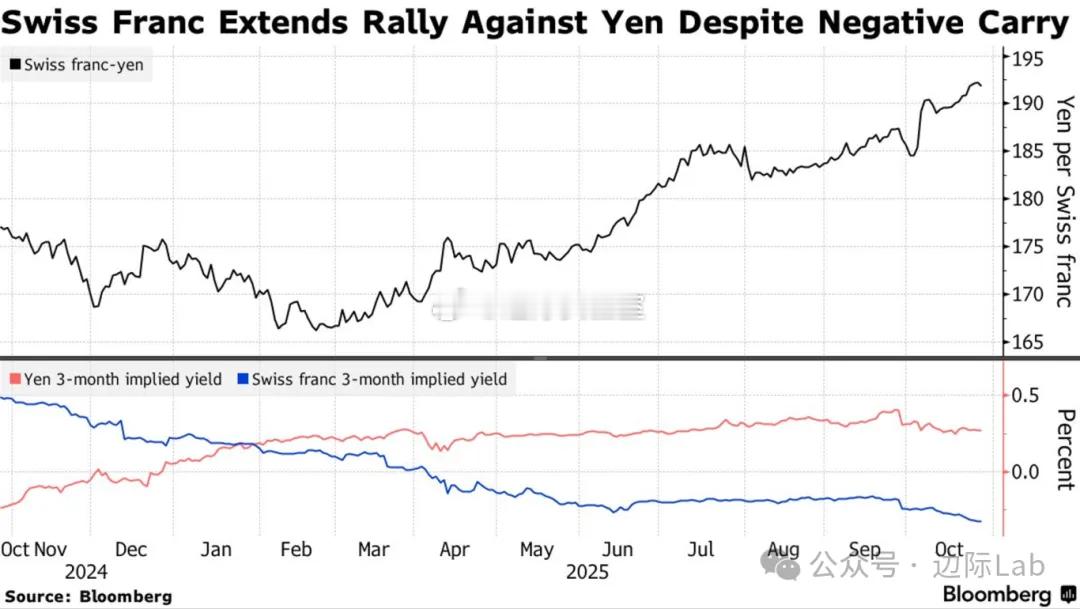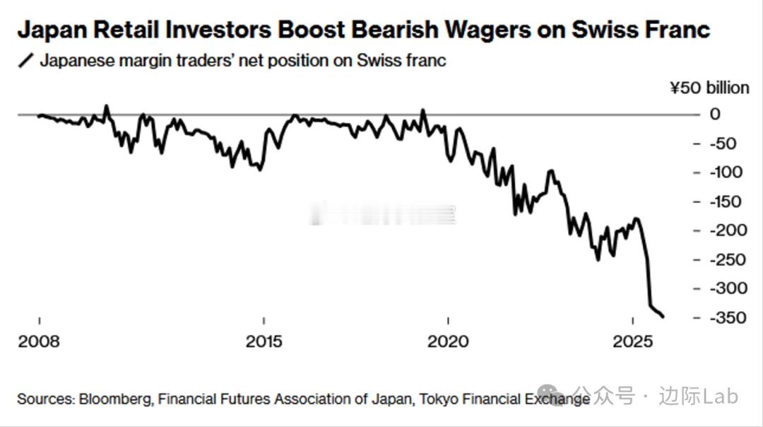 日本散户投资者正利用瑞士央行降息至零与日本央行持续紧缩政策所形成的显著利率价差,大规模建立瑞士法郎空头头寸以赚取正利差,其净空头头寸在本月已增至3489亿日元,创下2008年有记录以来的最高水平。尽管该交易策略旨在通过卖出负收益率的瑞士法郎、买入正收益率的日元来获取稳定收益,但瑞士法郎对日元的汇率年内意外大幅升值近10%,这一汇率变动造成的资本损失已基本完全抵消了利差带来的收益,导致年初以来建仓的投资者面临显著账面亏损。