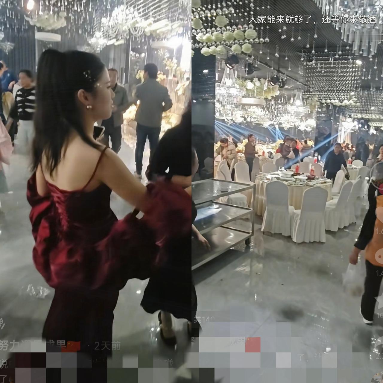 这谁还愿意办婚宴啊! 山东一新娘换完敬酒服出来,发现所有宾客打包的打包,走的走,而自己还没敬酒,他们就吃完准备回家了,本来想阻拦,可是举起的手楞了半天,收了回来。 原本婚礼流程进行得非常的顺利,正当说完大家吃好喝好这句话,新娘就去换敬酒服了,我相信这是很多地方办婚宴必有的流程,可是万万没想到的是,新娘换好一袭红色礼服出来,很多都已经吃完了,有的甚至在打包,只有少数人还在吃,自己也是第一次结婚,第一次遇到这种情况,真不知如何是好了 是现在的习俗变了吗?还是真的换衣服的速度太慢?很难评。