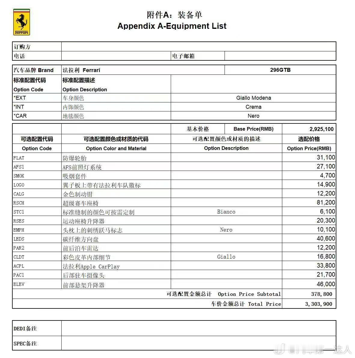 法拉利 296 GTB 小黄鸭,24年5200km 赛道座椅